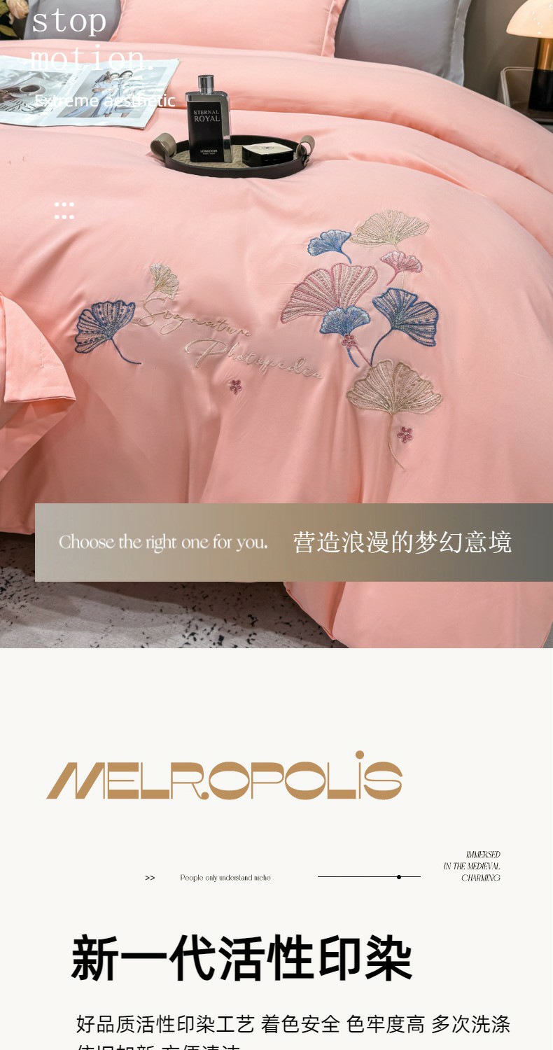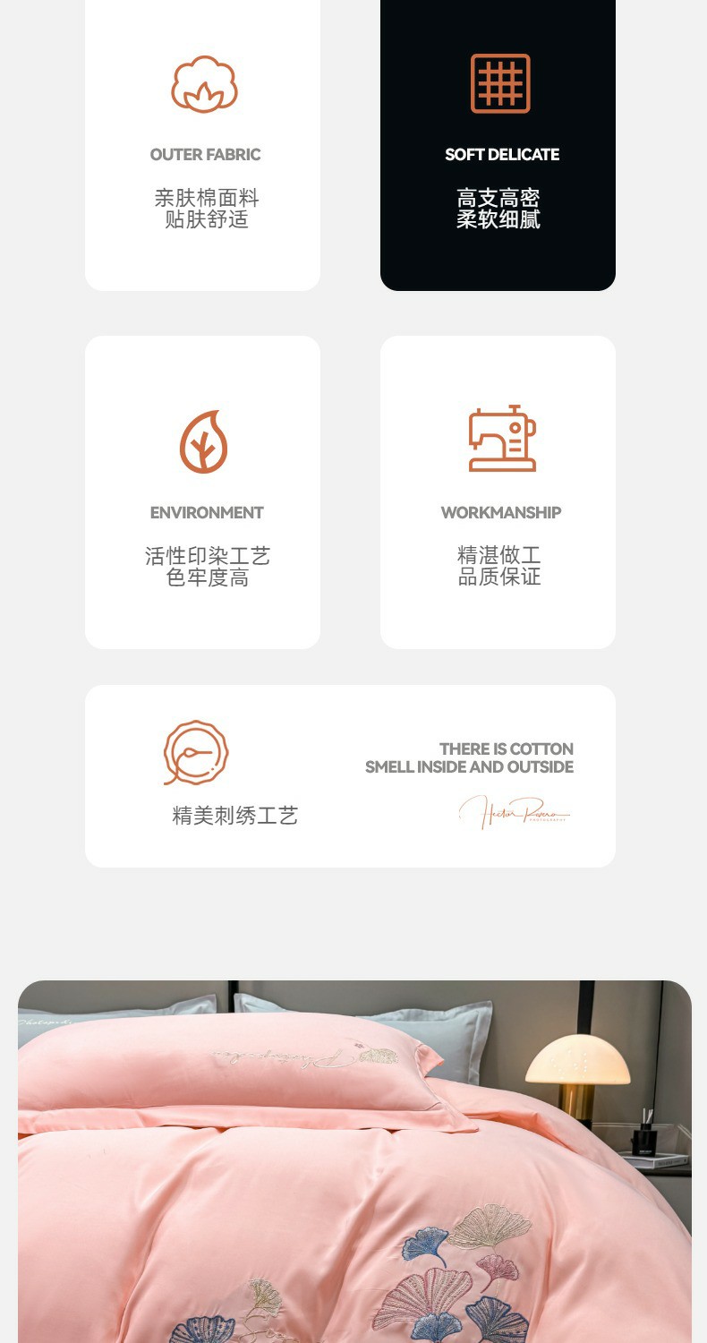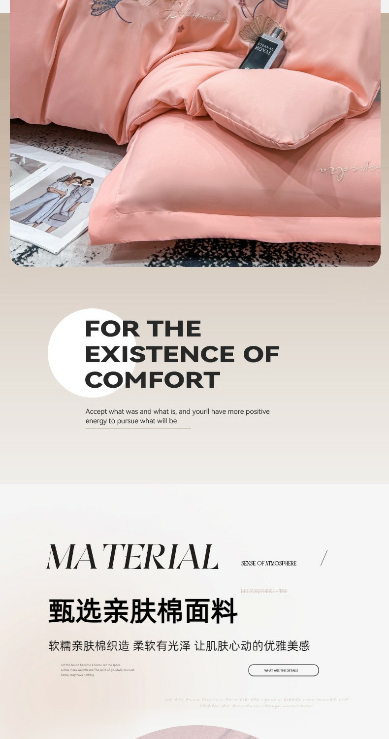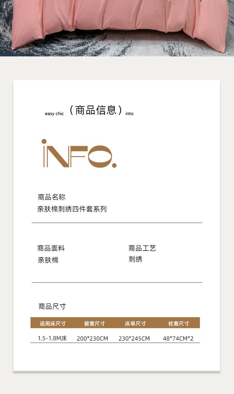 商品名称:悦织湾家纺 90克磨毛刺绣纯色四件套2025新款轻奢韩版公主风精致床上用品绣花亲肤水洗棉4件套 新银杏-玉色