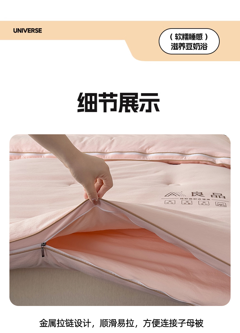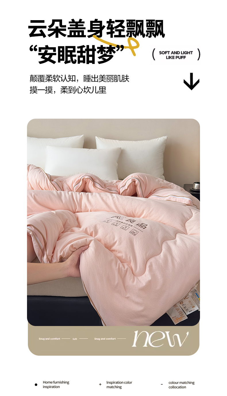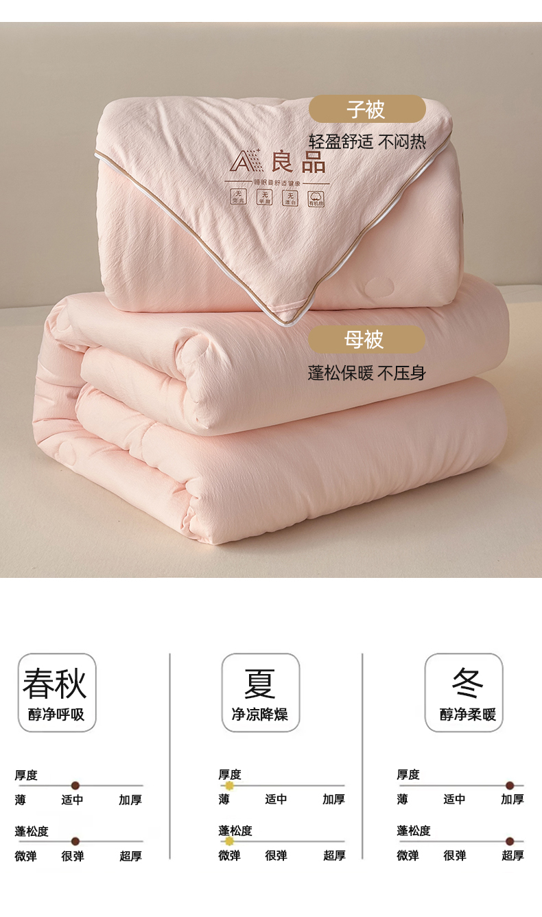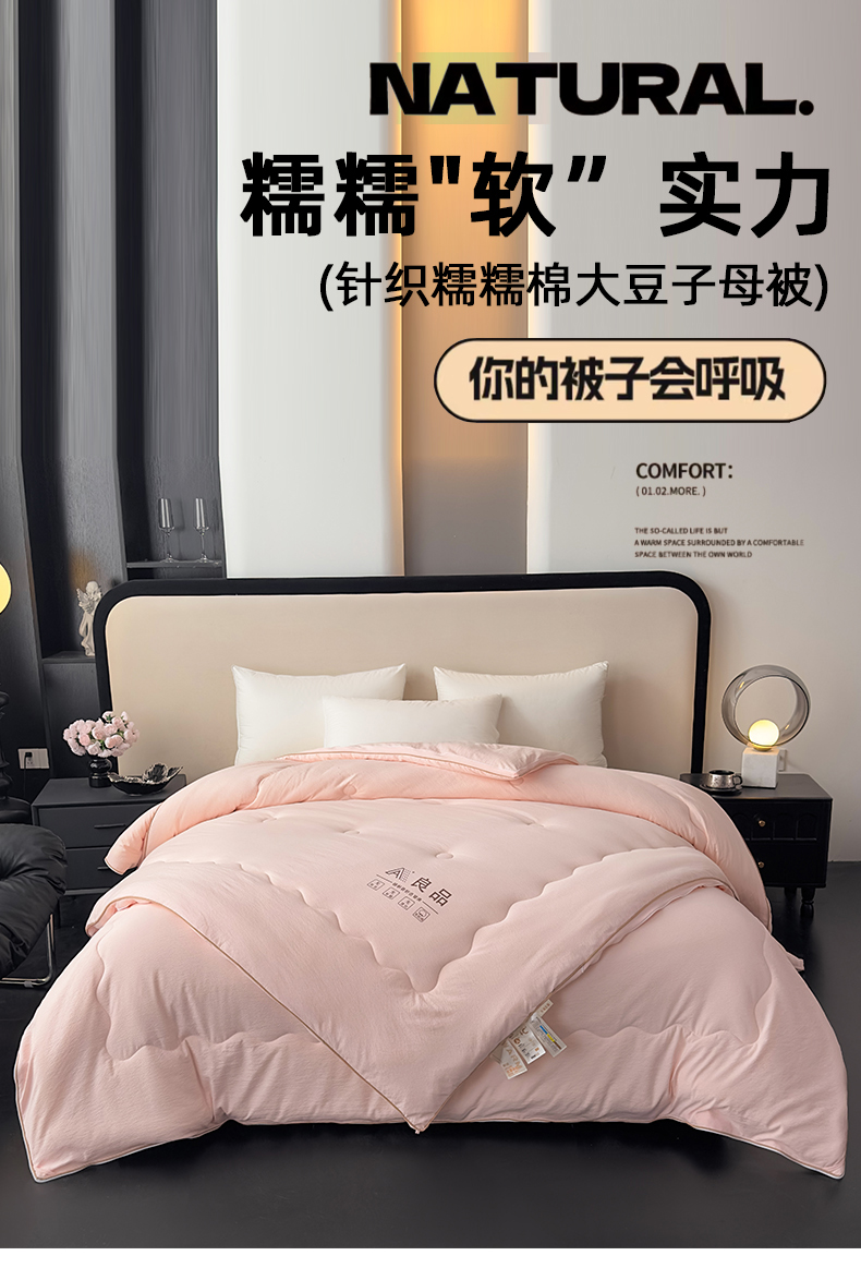 商品名称:蓝雀翎 2025新款10%针织糯糯棉大豆子母被被子被芯 粉色