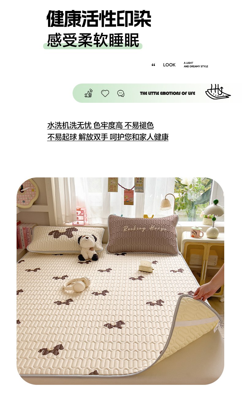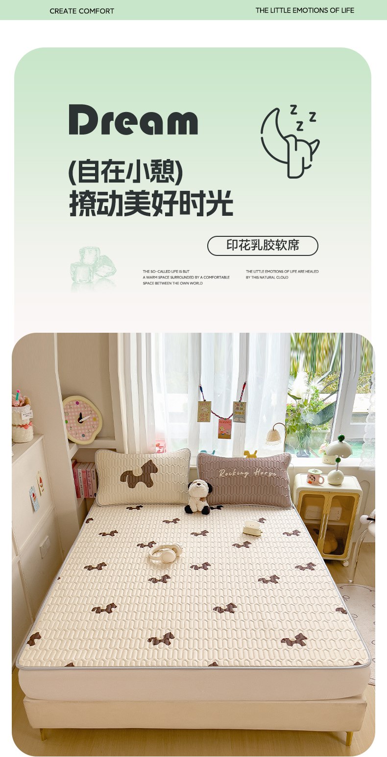 商品名称:摩妮卡 2026新款数码大版小清新乳胶凉席床席款三件套-场景二 勤劳小马驹