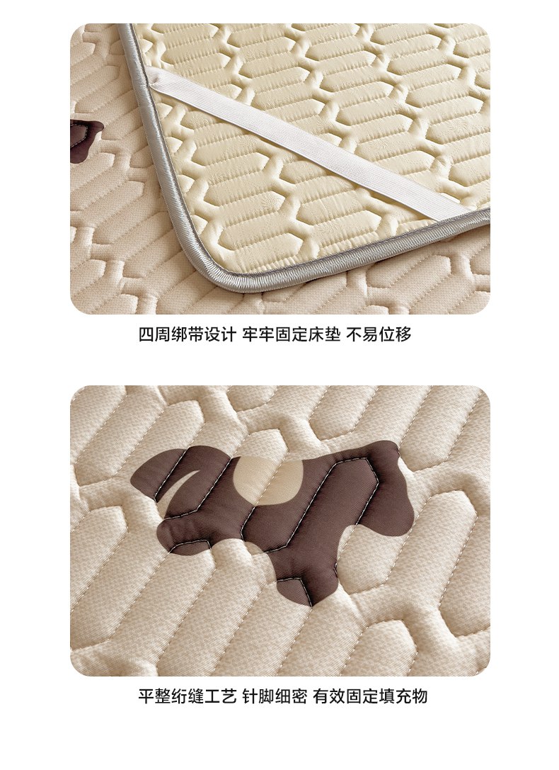 (总)摩妮卡 2026新款水洗棉夹棉防水床褥床垫款三件套,几何-卡其,几何-奶白,几何-浅粉,几何-天蓝