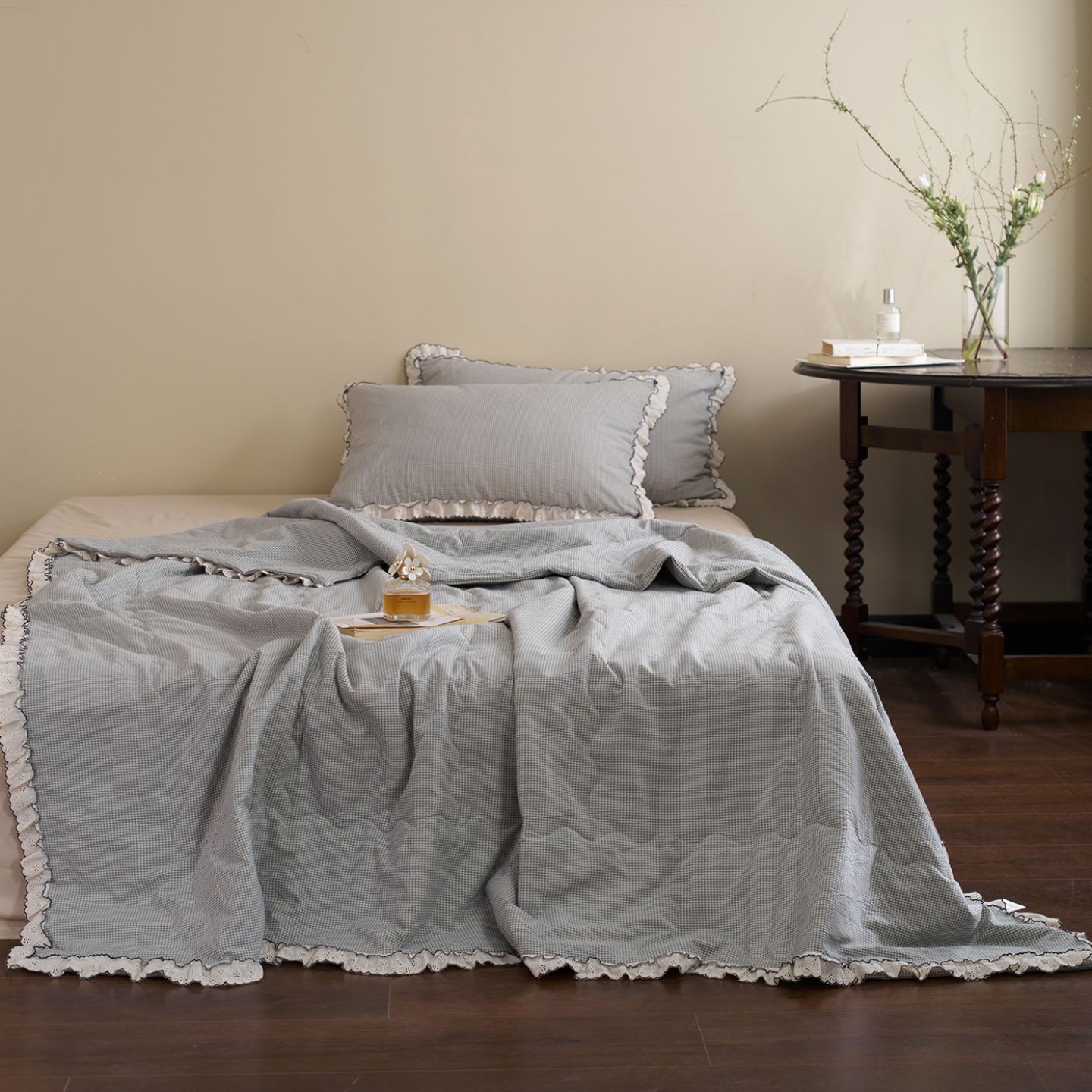 洋铭区(原狠狠爱) 2026新款色织水洗棉花边夏被 小格子-甜蜜咖