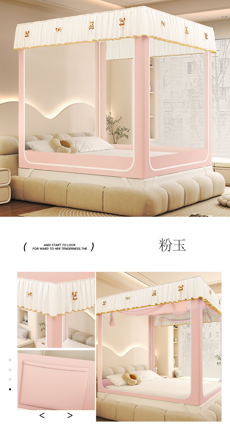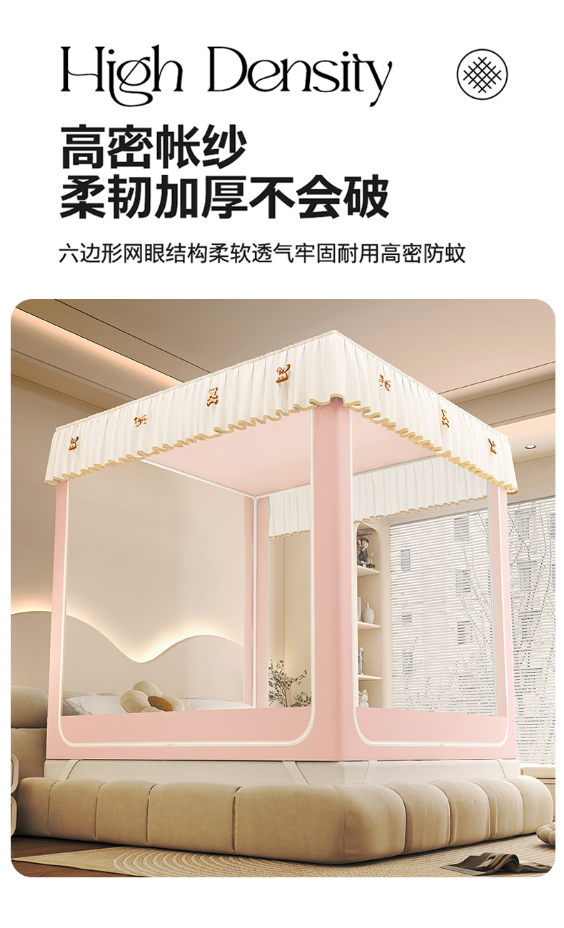 (总)初心 2025新款落地宫廷蚊帐-粉黛佳人,白色,粉,米黄,水蓝,玉色,紫色
