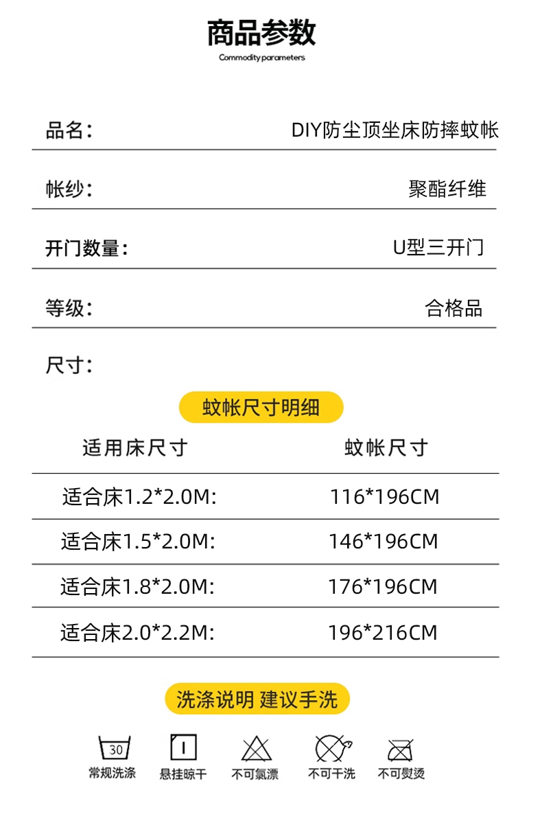 商品名称:(总)初心家纺 2026新款DIY防尘顶坐床防摔蚊帐
