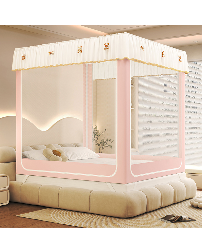 (总)初心家纺 2025新款升级款三开门宫廷蚊帐-春暖花开,白色,粉色,红豆沙,灰色,雾霾蓝