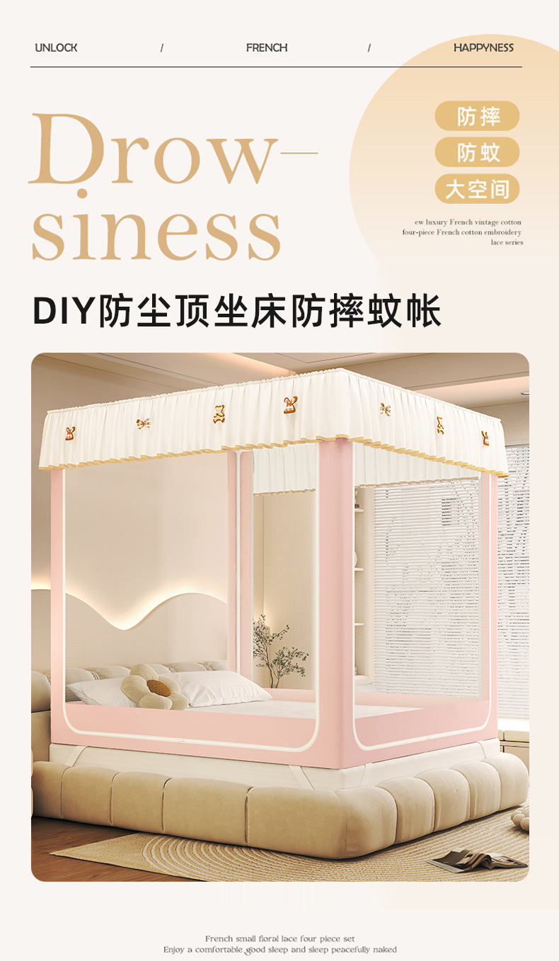 (总)初心家纺 2026新款DIY防尘顶坐床防摔蚊帐
