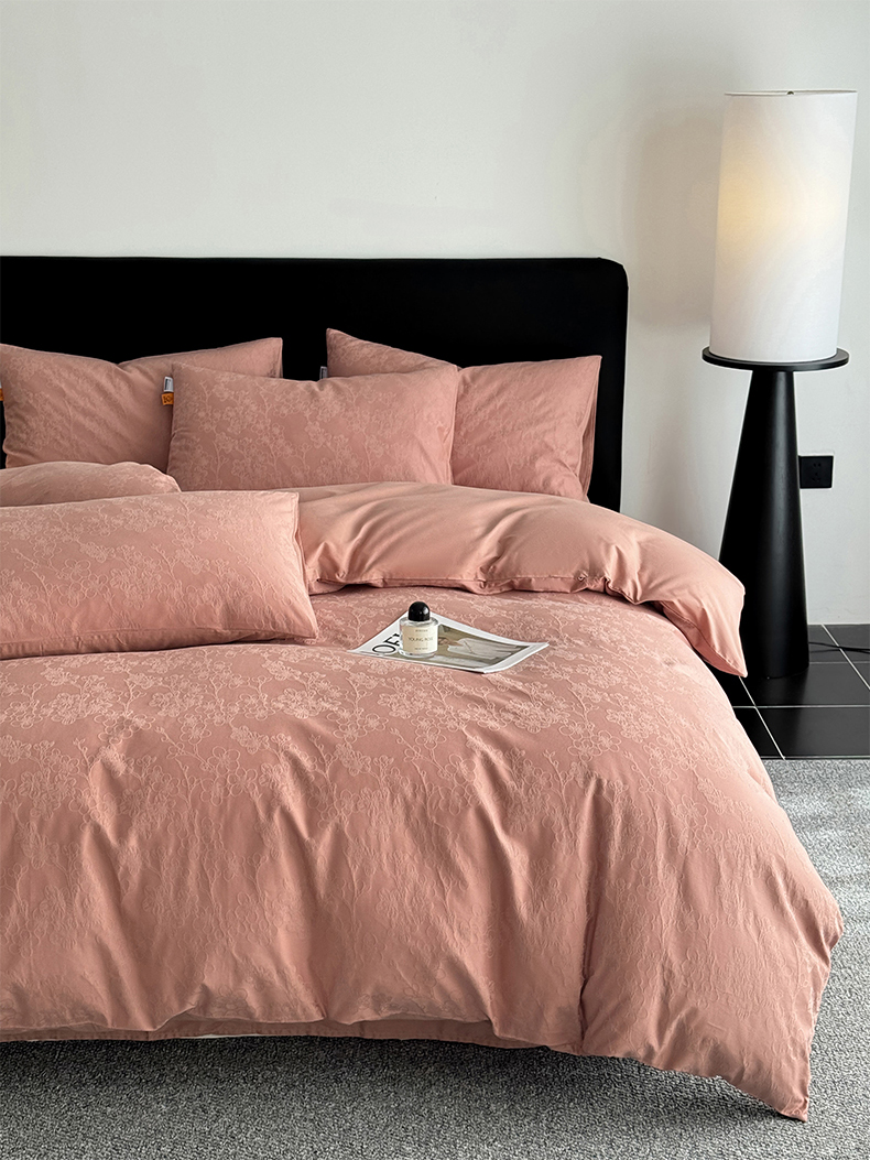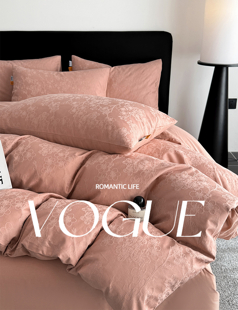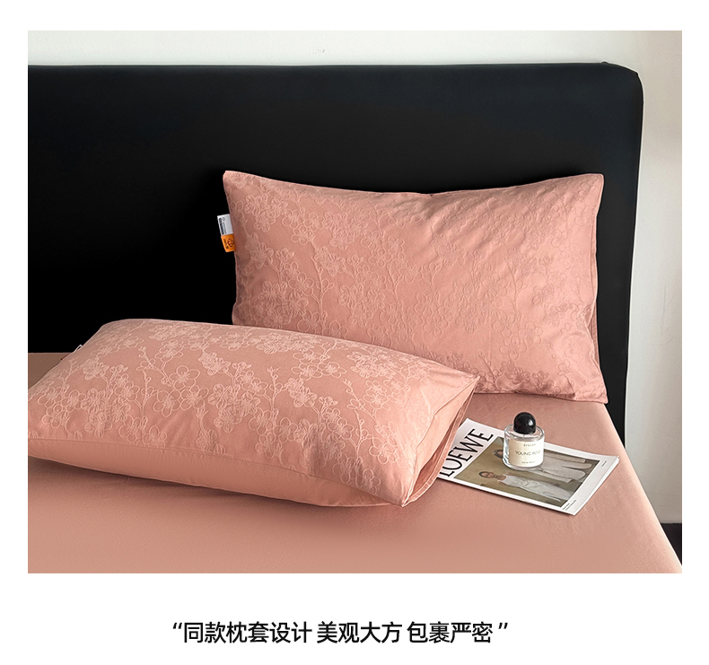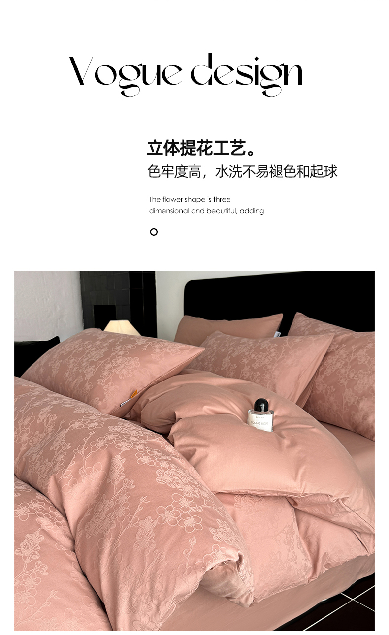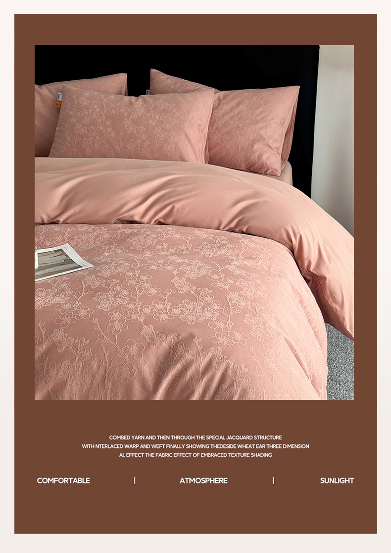 商品名称:简宜家居(朝初家纺) 2026新款四季40支全棉提花纯棉四件套--彩绘系列 粉嫩-梅影