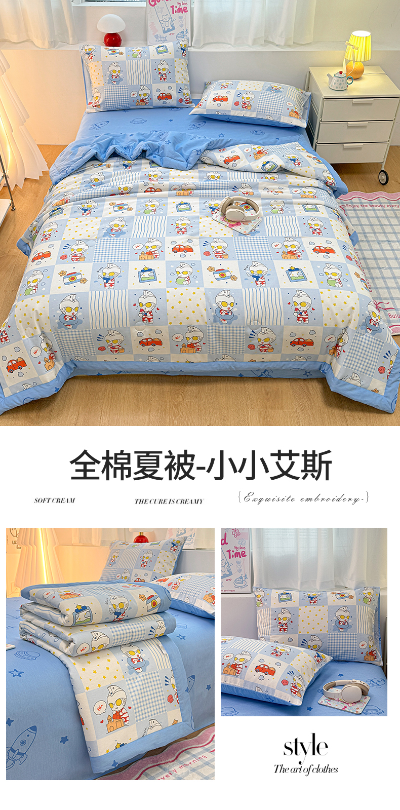 • 91家纺网 家纺一手货源 找家纺 (总)名兮家居 2026新款正版授权经典奥特曼全棉夏被四件套【含防伪标】,全棉夏被-艾斯奥特曼,全棉夏被-奥特勇士,全棉夏被-呆萌kt,全棉夏被-点点玉桂狗,全棉夏被-光线王子,全棉夏被-美美库洛米,全棉夏被-魔法美乐蒂,全棉夏被-甜筒库洛米,全棉夏被-小小艾斯,全棉夏被-星星奥特曼