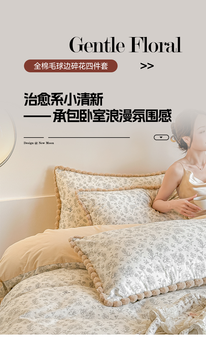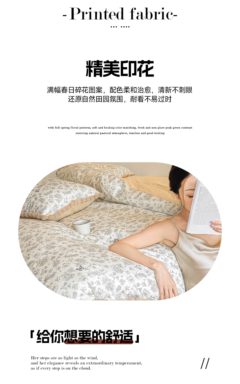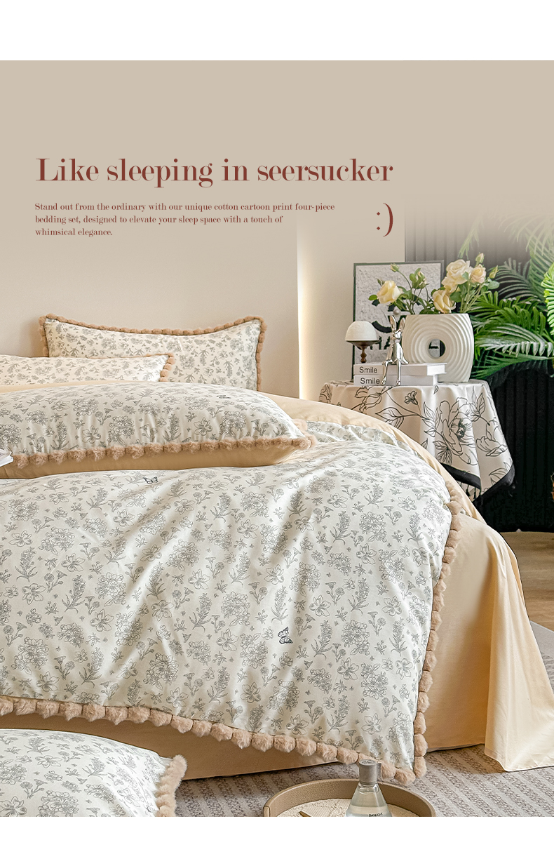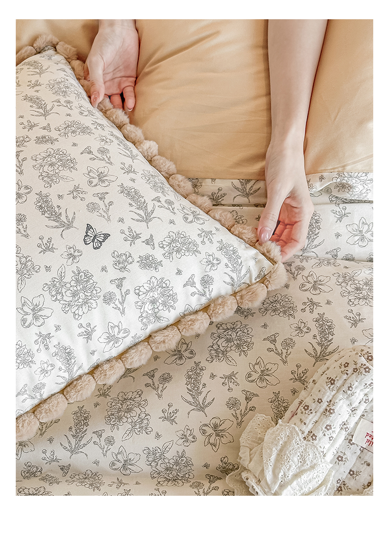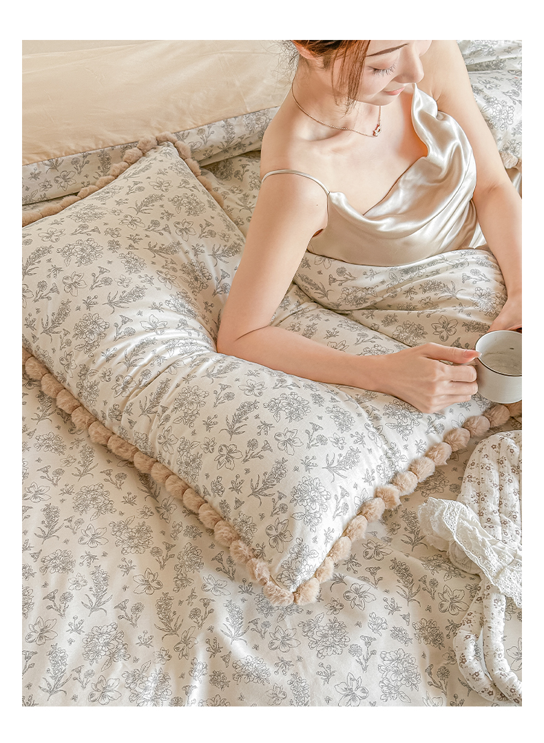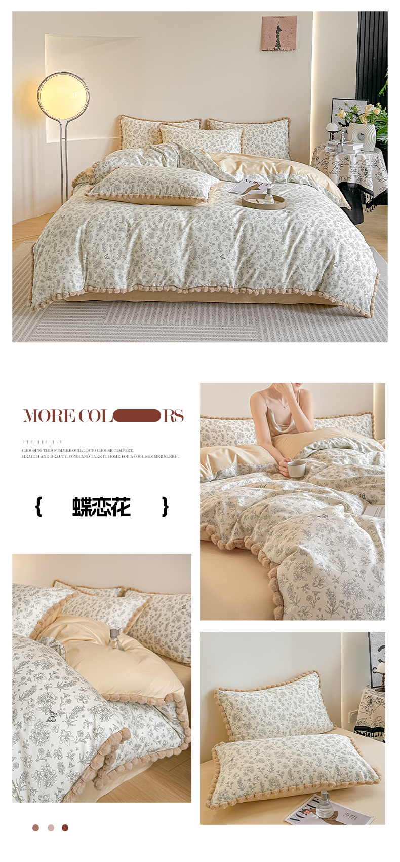 当前位置: 91家纺网 > 商品网购 > 床品套件 > 四件套 > 全棉普通四件套 > 宅家居 2026新款轻奢极简风全棉毛球款40支纯棉13372小清新喷气印花四件套 蝶恋花