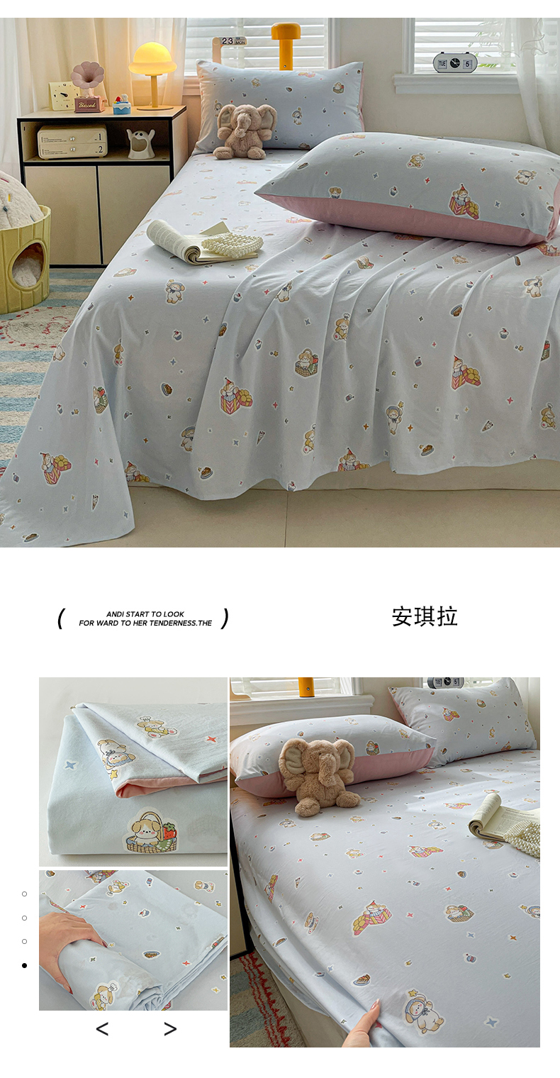 • 91家纺网 家纺一手货源 找家纺 纽缦家纺 2026新款A类105g四件套古法水洗棉单床单床单单件 安琪拉