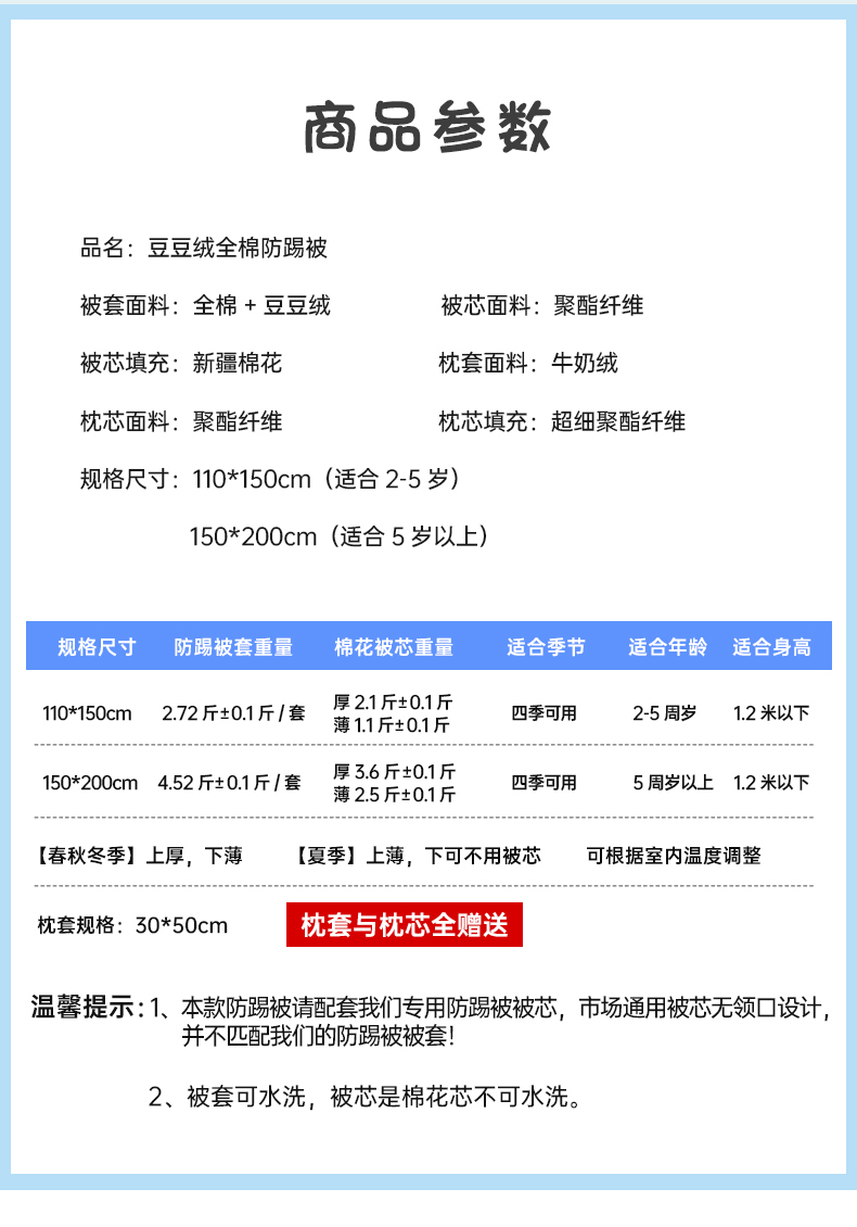 110*150cm大豆被芯防踢被2薄 | ¥170.00 |