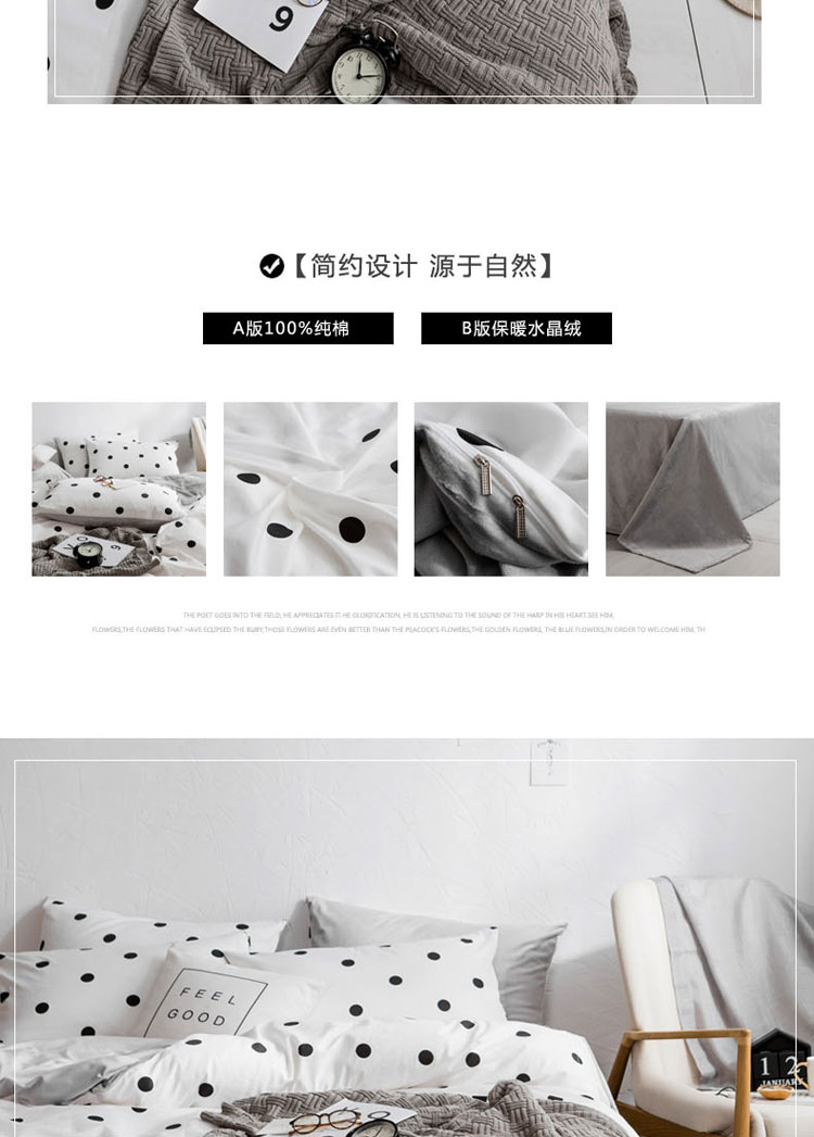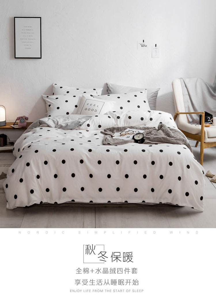 梦家居韩国简约纯棉水晶绒四件套A版全棉B版水晶绒四件套