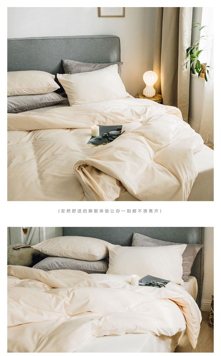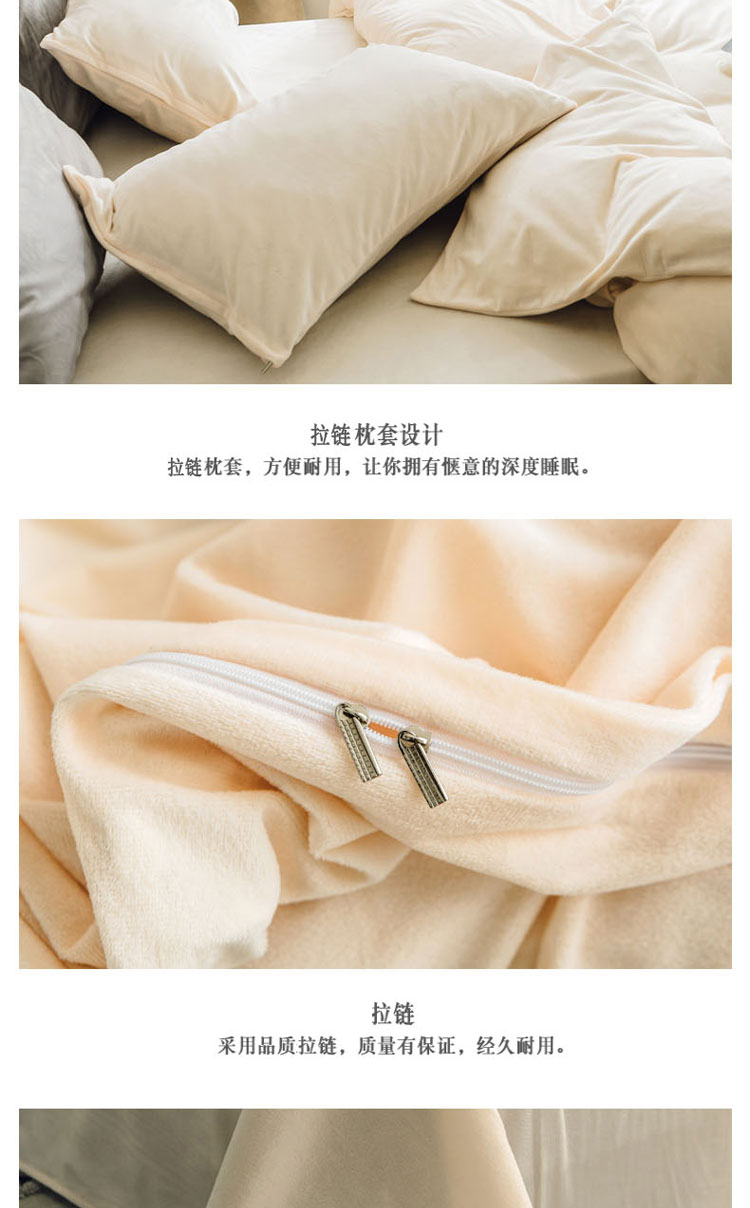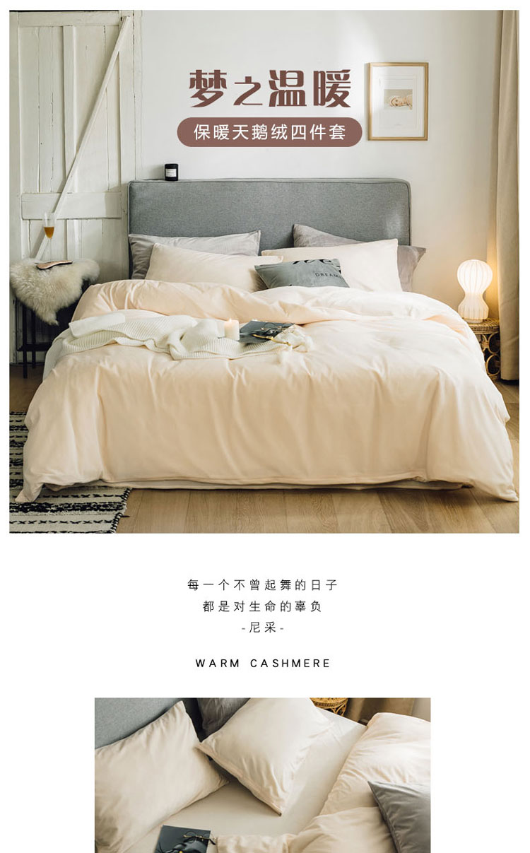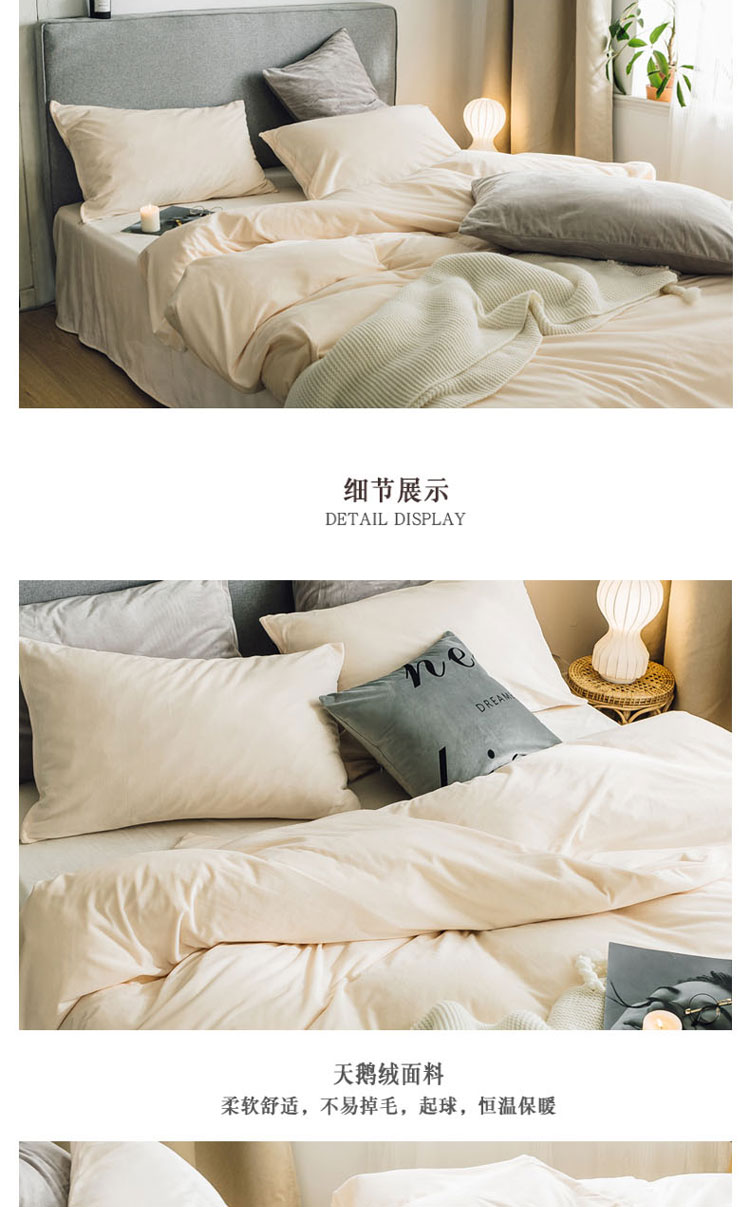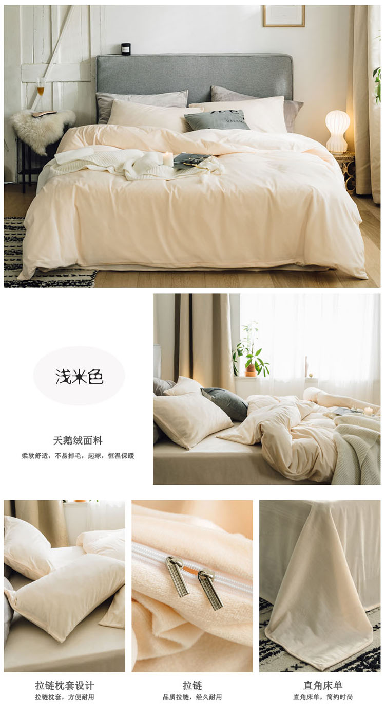 商品名称:梦家居 2019韩国简约素色天鹅绒四件套 浅米色