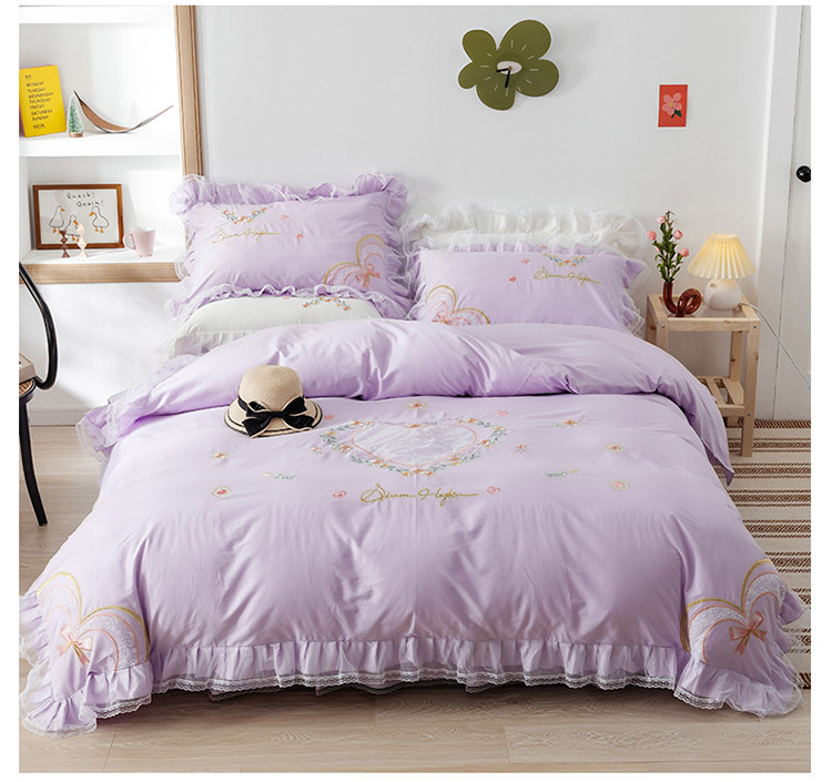 (总)迪欧芙2020绣花床裙款韩版四件套全棉四件套 玛奇朵,白色,蓝色,粉玉,紫色