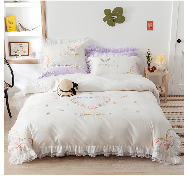 (总)迪欧芙 2024春季纯棉13372公主风四件套刺绣花边四件套爱的结语系列,爱的结语-白,爱的结语-粉,爱的结语-蓝
