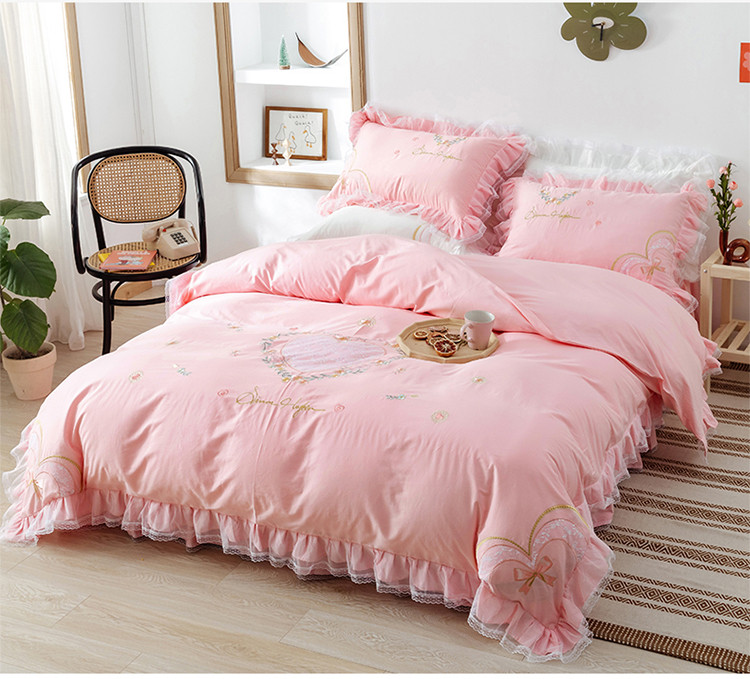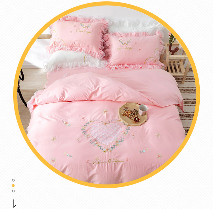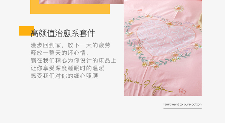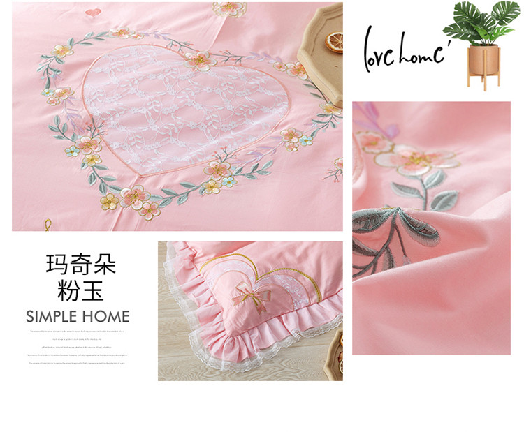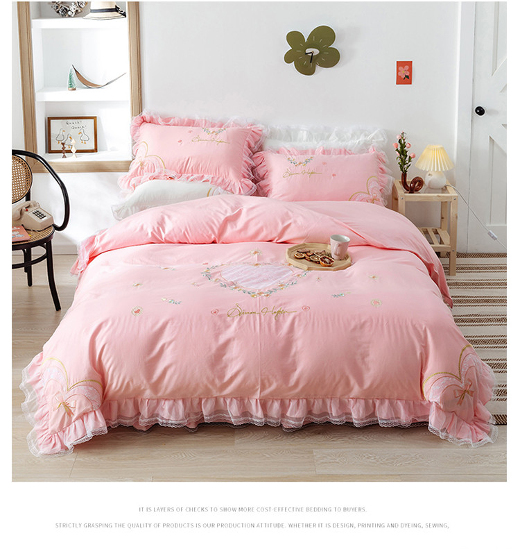 迪欧芙 2024春季纯棉13372公主风四件套爱的结语系列 爱的结语-粉,爱的结语-粉