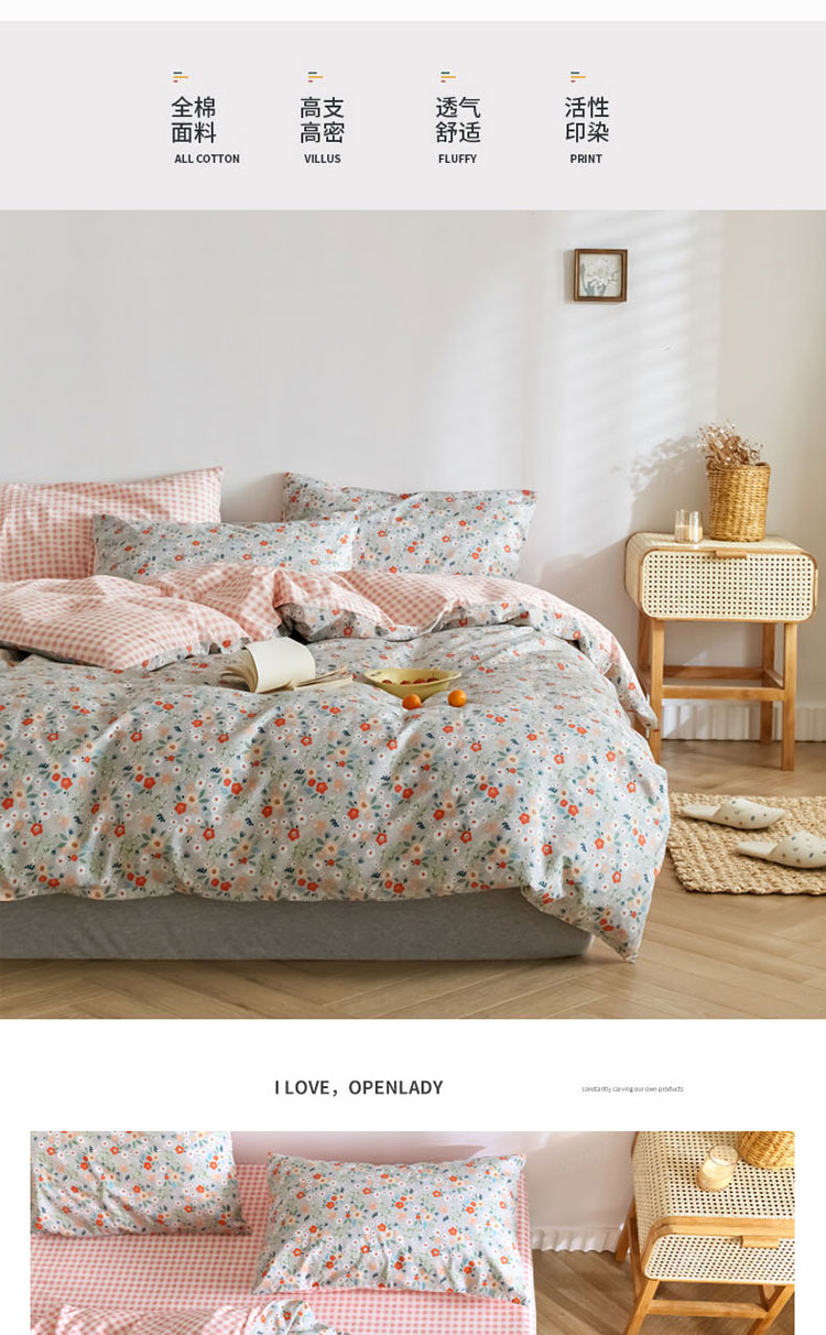 当前位置: 91家纺网 > 商品网购 > 床品套件 > 四件套 > 全棉普通四件套 > 梦家居 2020新款全棉小碎花四件套 可可佳人