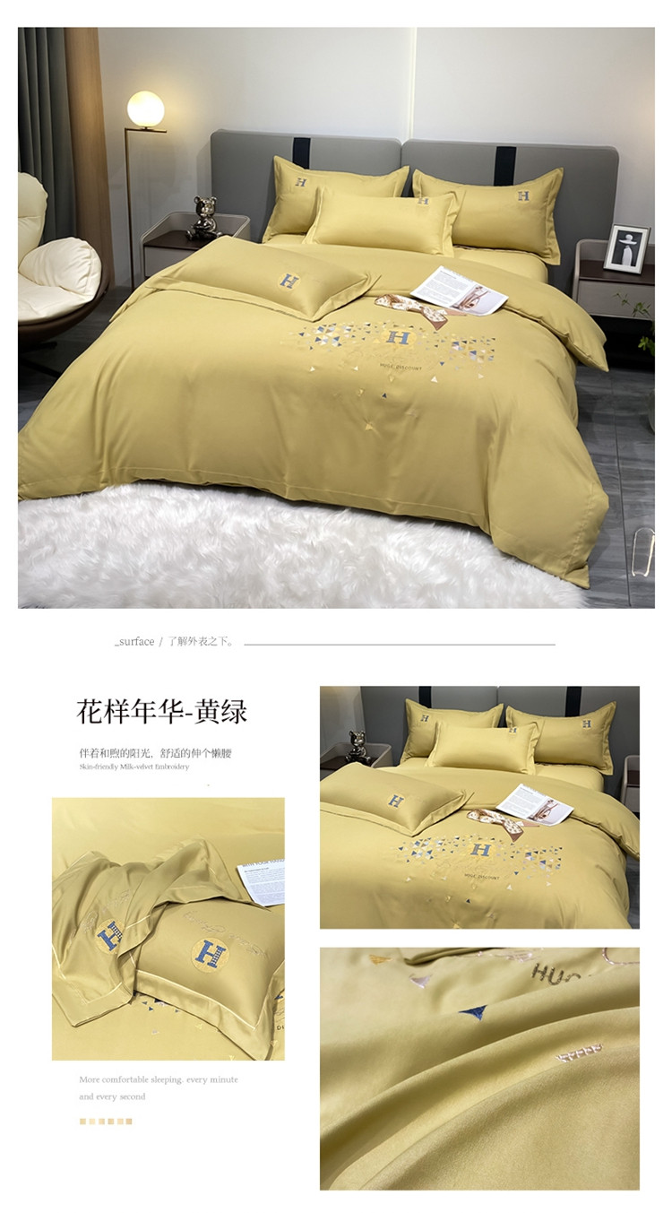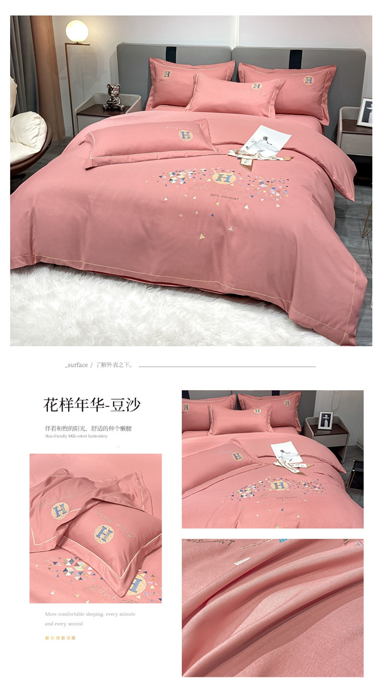 (总)靓生活 2023新款韩版花边水洗磨毛床裙四件套,豆沙,橘色,奶油黄,浅绿,香芋紫,玉色,紫色