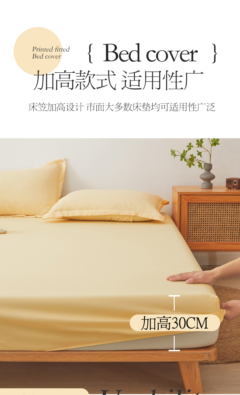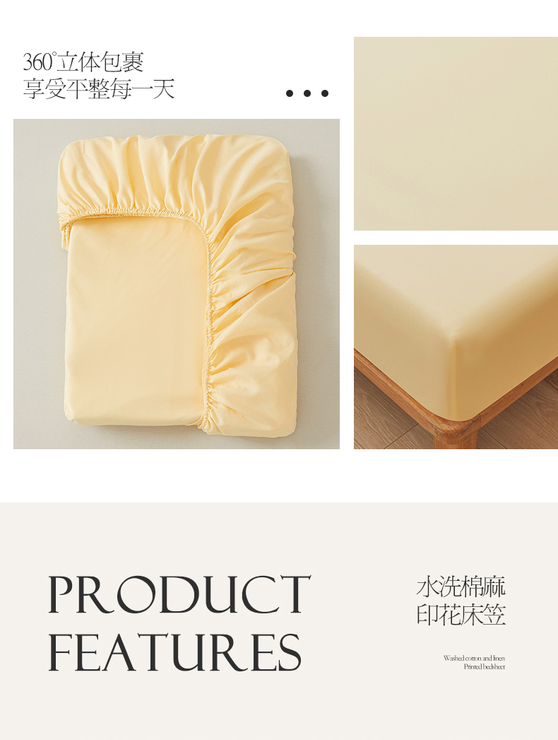 • 91家纺网 家纺一手货源 找家纺 新款水洗棉麻防尘抗菌单层床笠全包床罩 鹅黄色