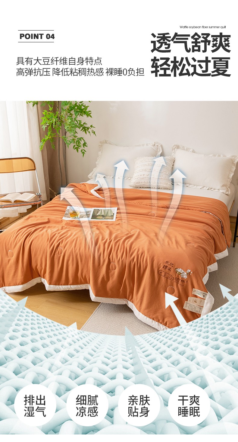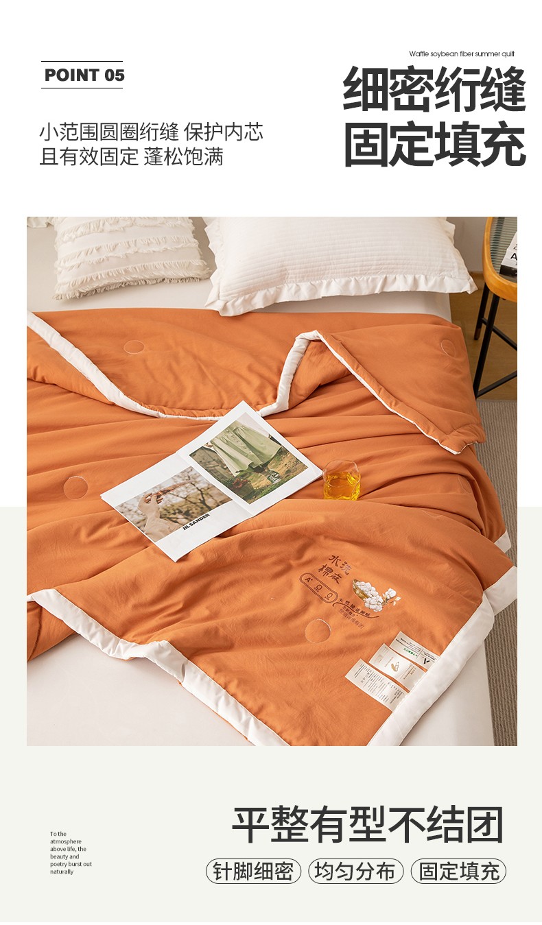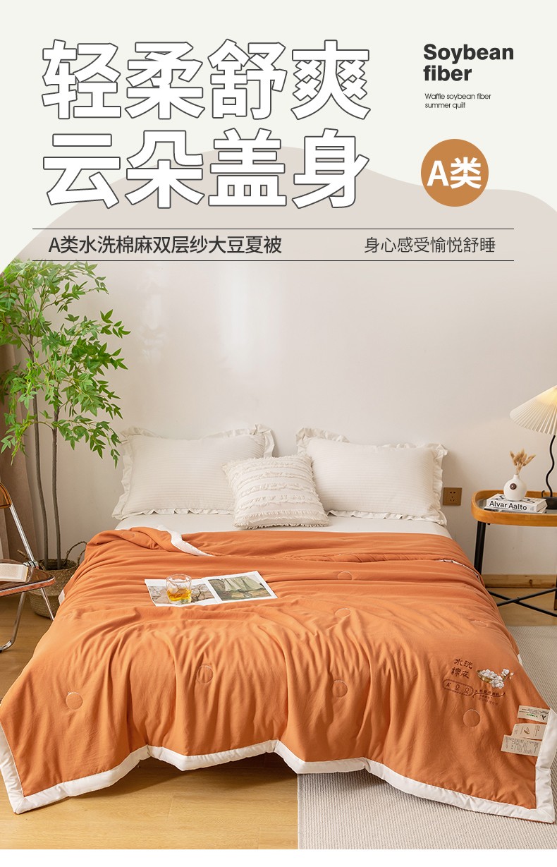 商品名称:钰博 2023新款水洗棉棉麻大豆夏被 暖橙色