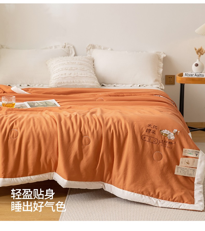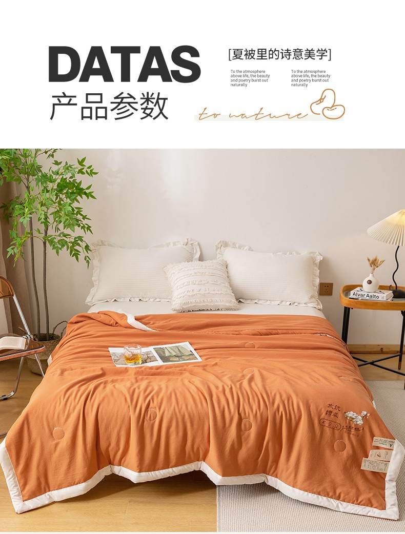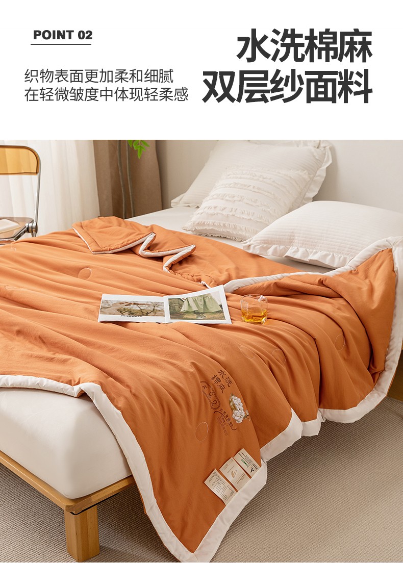 钰博 2023新款水洗棉棉麻大豆夏被 暖橙色