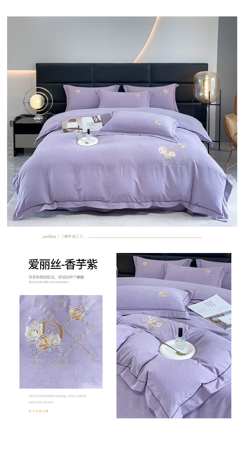 靓生活 2023新款爱丽丝系列锦棉提花刺绣四件套 爱丽丝-香芋紫