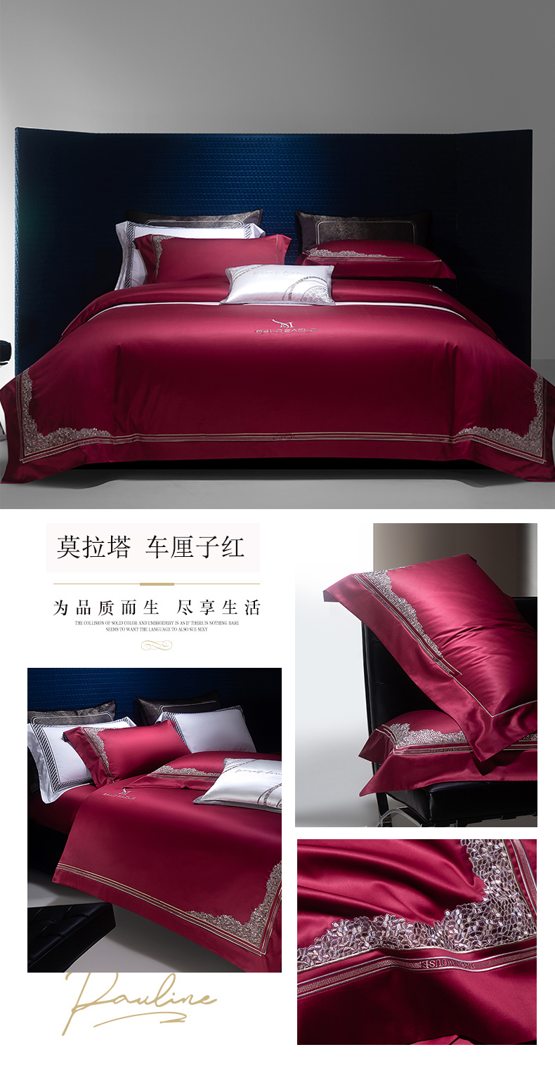 诗黛尔长绒棉刺绣四件套-莫拉塔系列 车厘子红