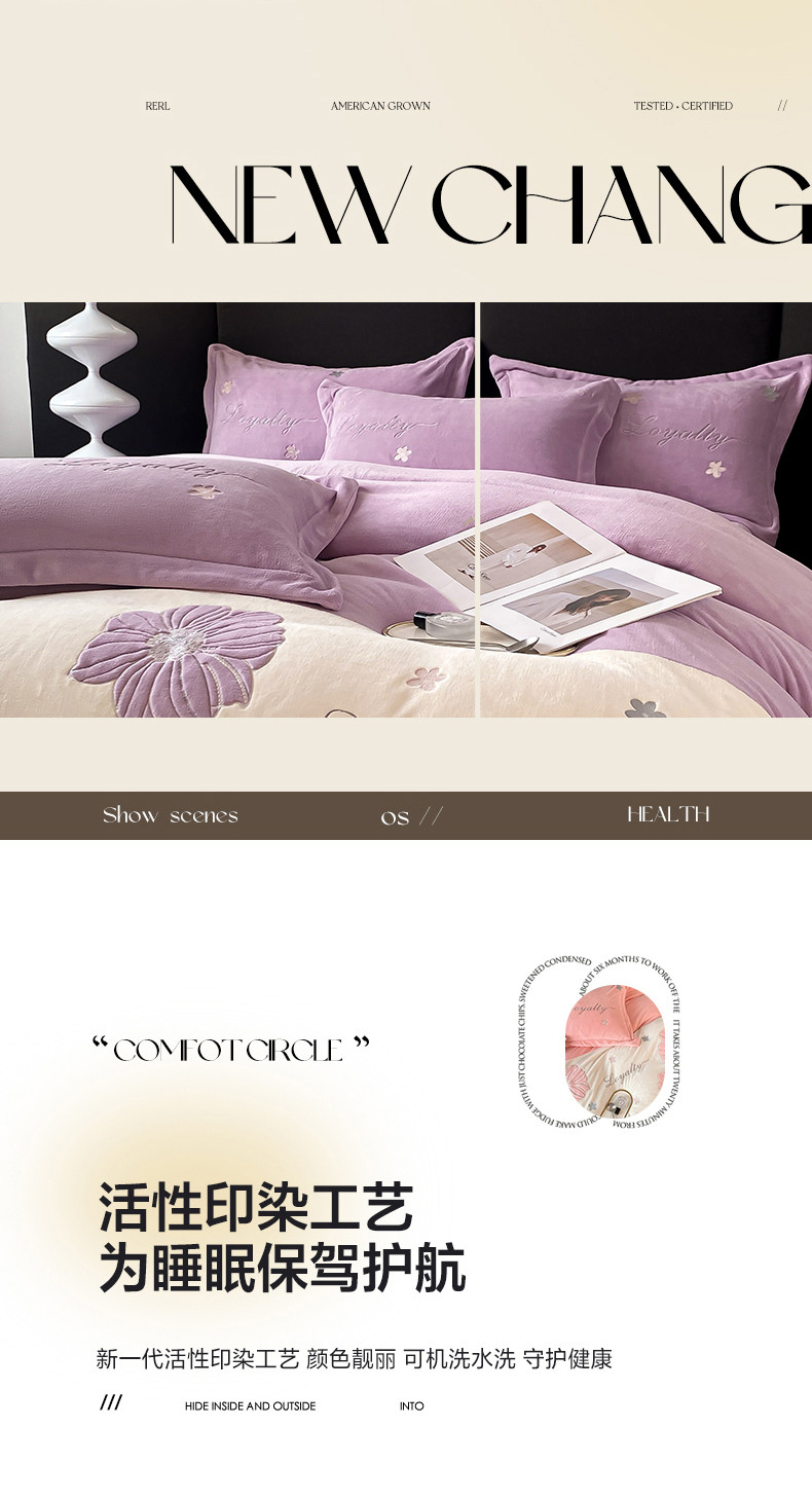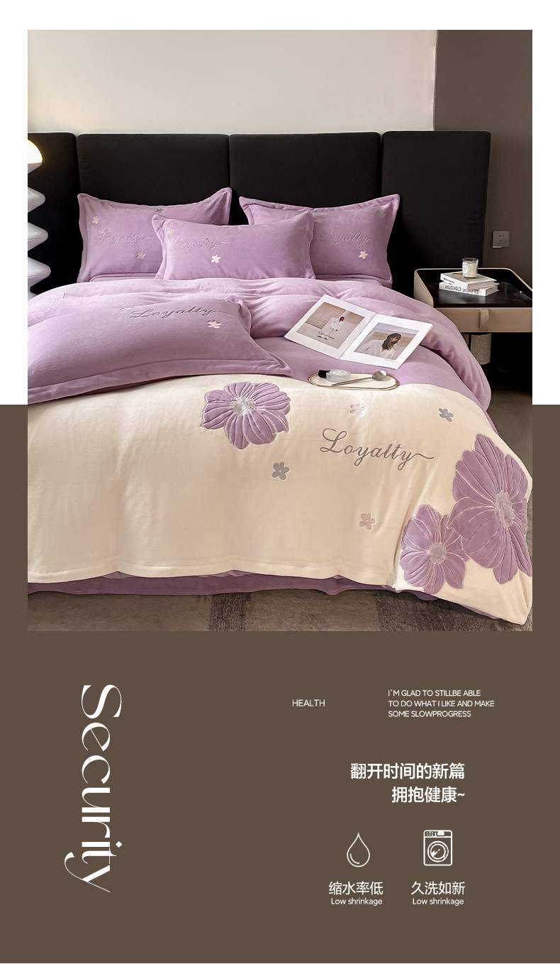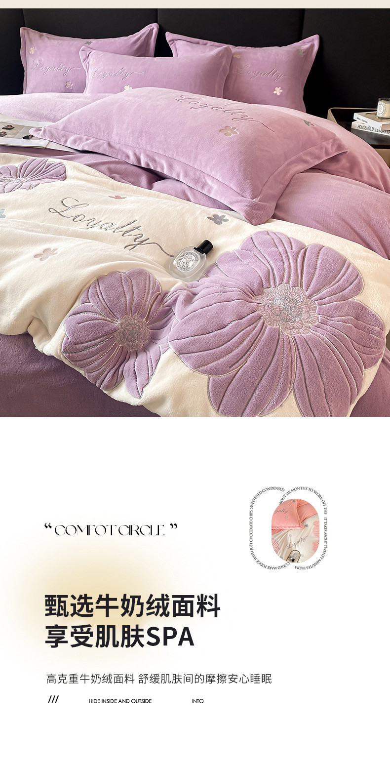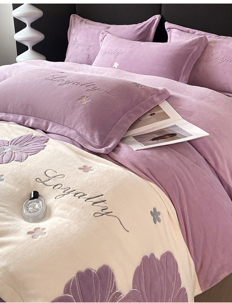 当前位置: 91家纺网 > 商品网购 > 床品套件 > 四件套 > 牛奶绒四件套 > 你好美丽 2025新款200克牛奶绒拼接刺绣四件套芬芳系列 芬芳紫