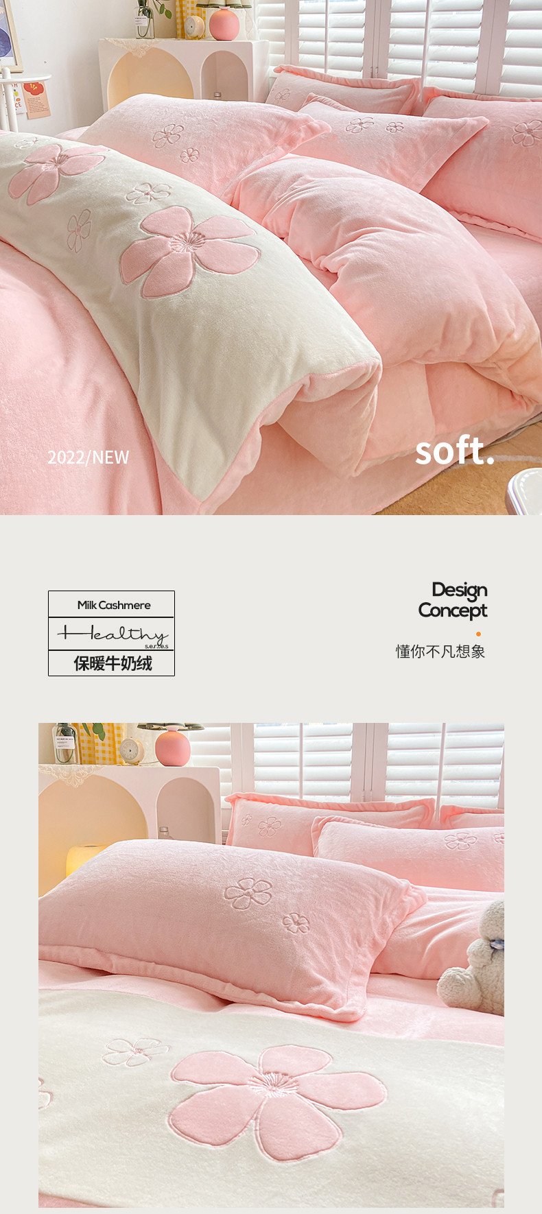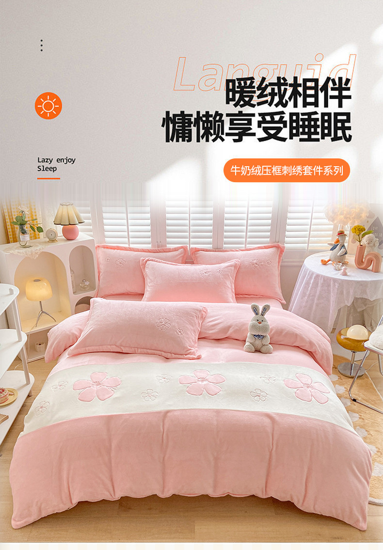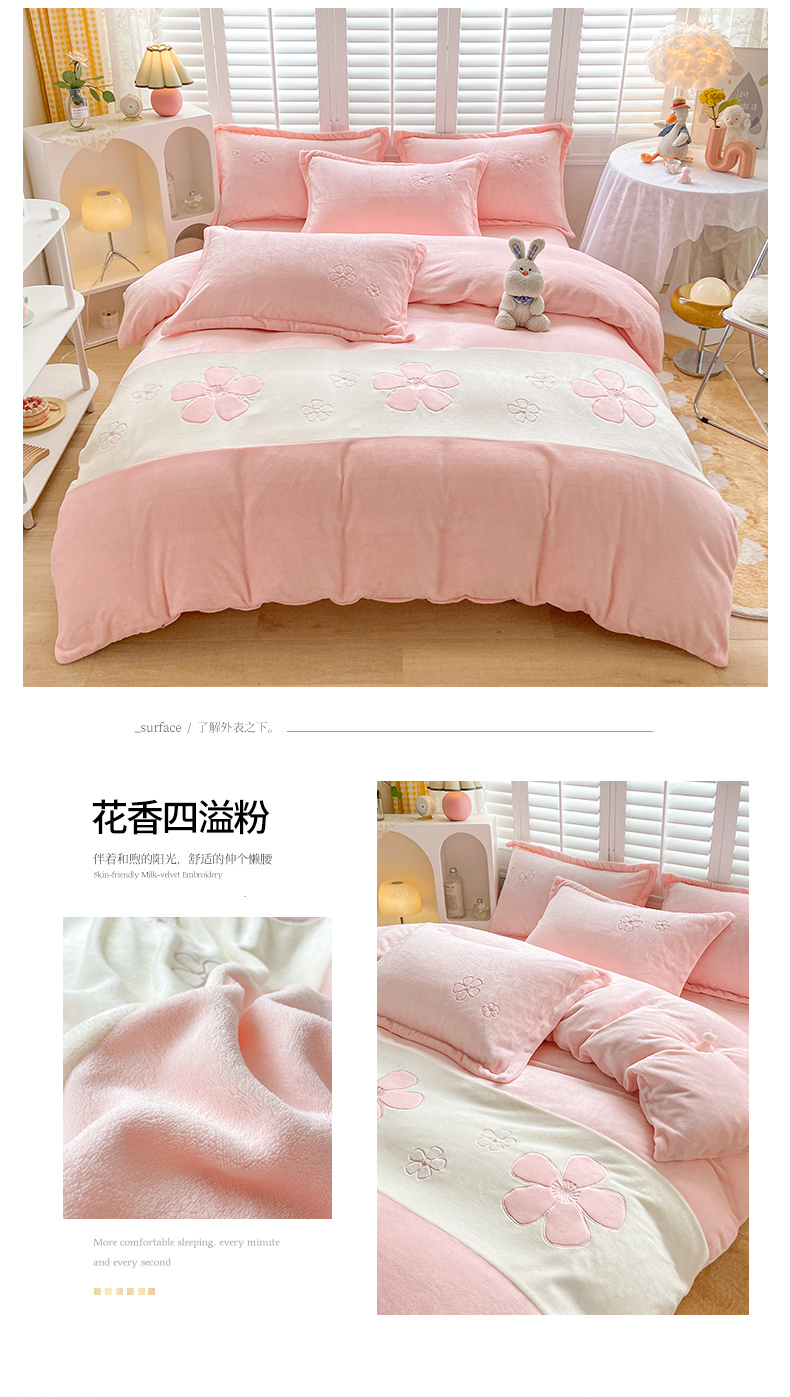 当前位置: 91家纺网 > 商品网购 > 床品套件 > 四件套 > 牛奶绒四件套 > 你好美丽 2025新款200克牛奶绒刺绣花卉3系列四件套 花香四溢粉