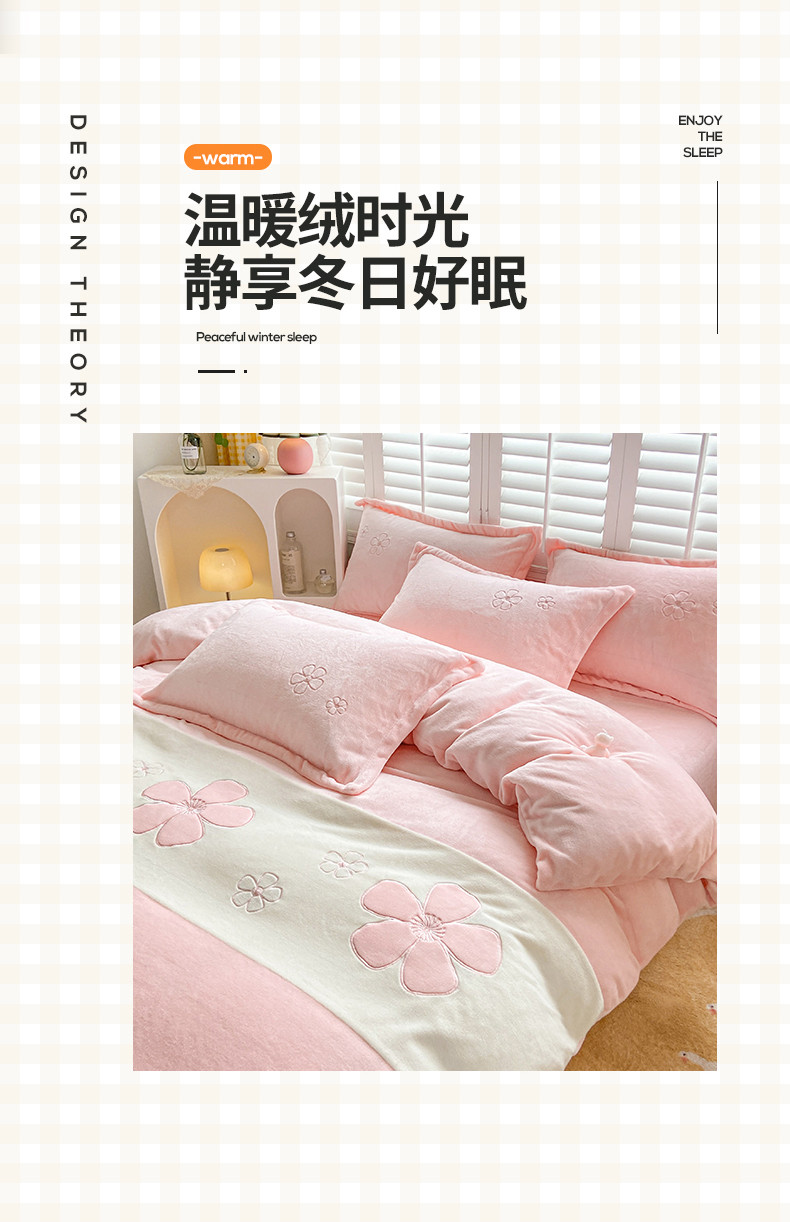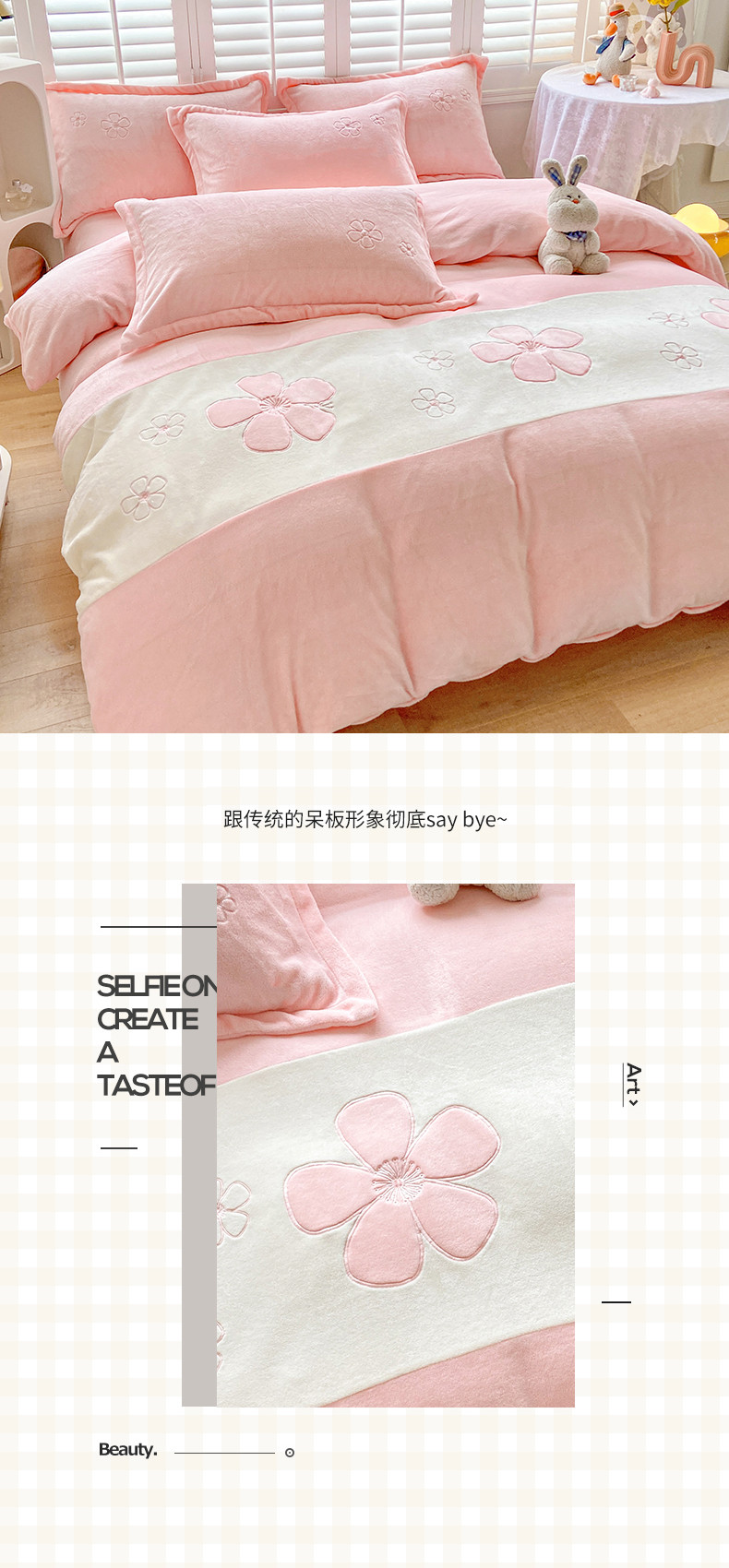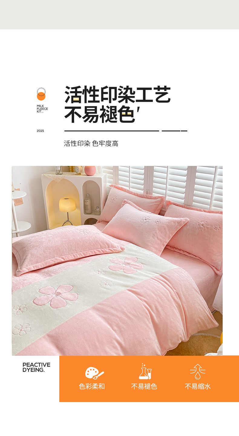 当前位置: 91家纺网 > 商品网购 > 床品套件 > 四件套 > 牛奶绒四件套 > 你好美丽 2025新款200克牛奶绒刺绣花卉3系列四件套 花香四溢粉