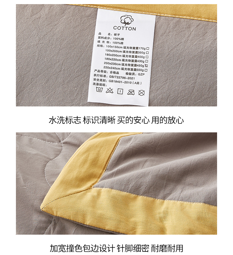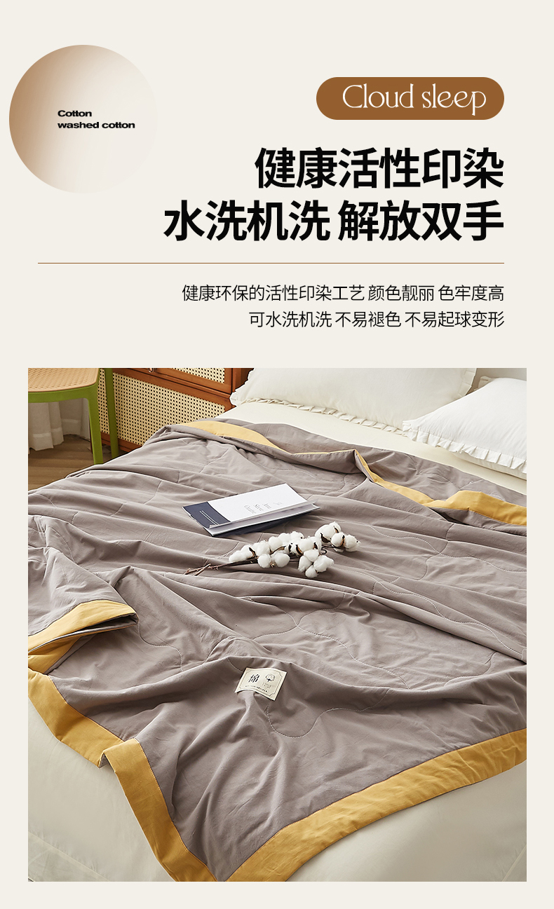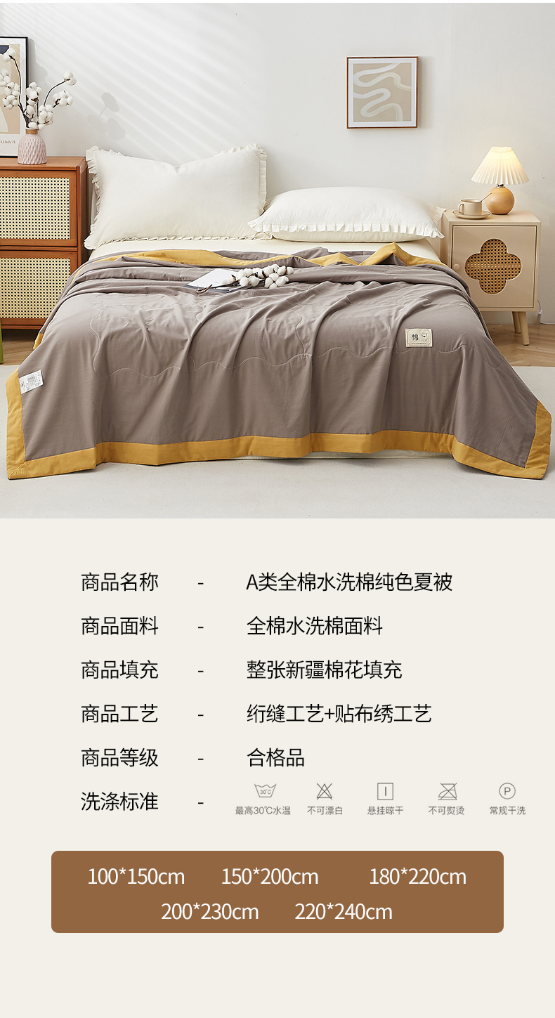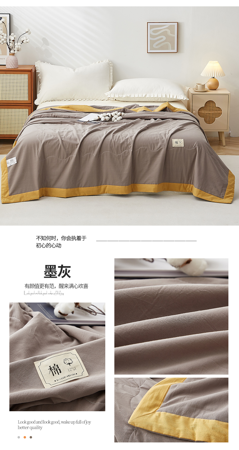 商品名称:格子铺2024新款纯色全棉水洗棉棉花夏被 墨灰