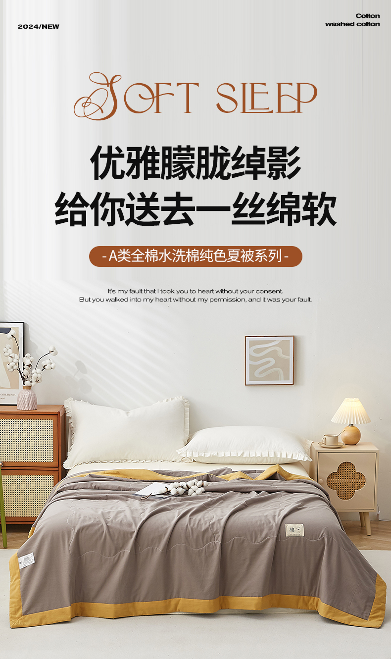 (总)格子铺-2024年新款无印风不染原棉全棉水洗棉烫画夏被,朴棉白,无染白,原棉白