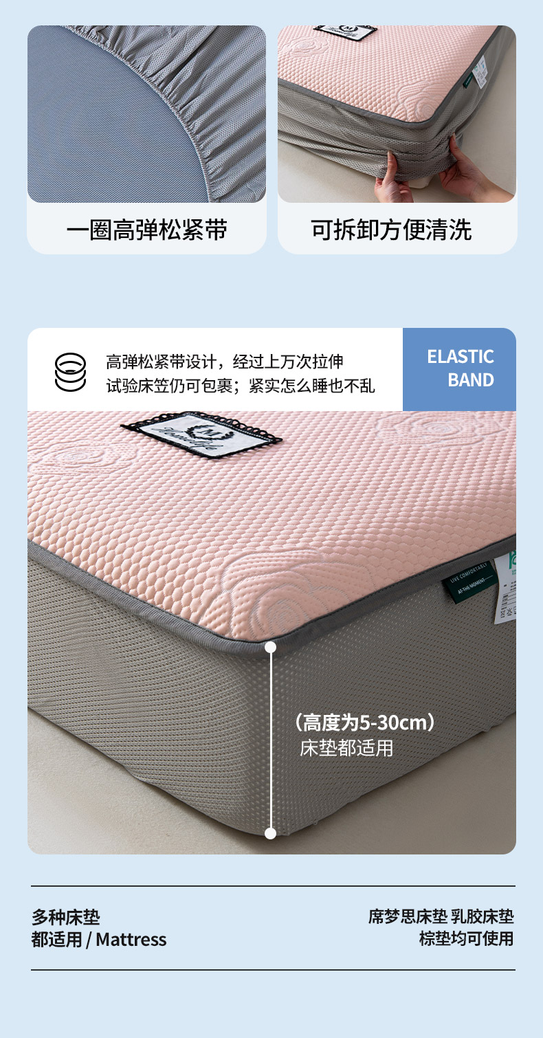 (总)好眠好梦家纺 2025新款全棉50S抗菌防螨夹棉防水床笠-无限之光系列,白色,粉色,卡其,深灰,天蓝,烟灰