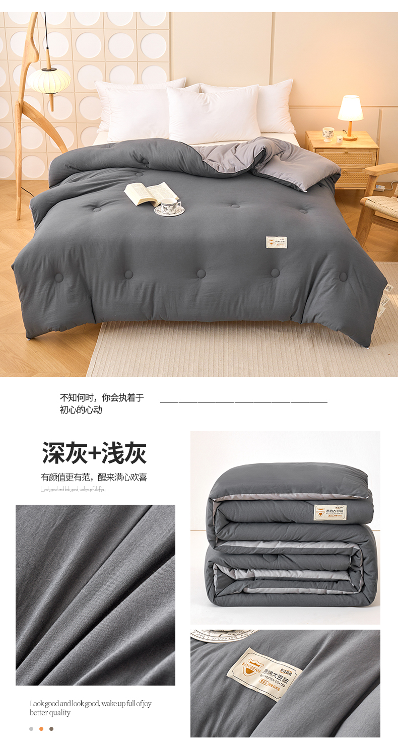• 91家纺网 家纺一手货源 找家纺 梦恬佳 2024新款A类原棉亲肤棉大豆被夏被春秋被冬被 深灰+浅灰