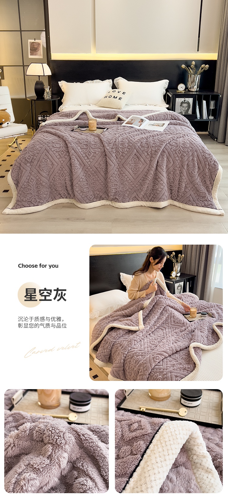 (总)世纪绒品 2025新款A类加厚水波纹羊羔绒双层提花毛毯,水波纹-蓝灰,水波纹-浅灰,水波纹-深灰,水波纹-浅卡,水波纹-浅粉,水波纹-米白