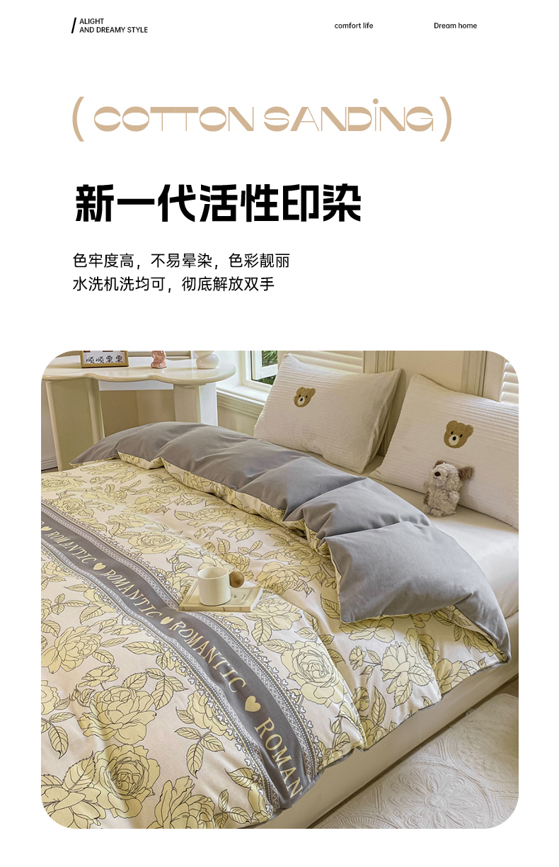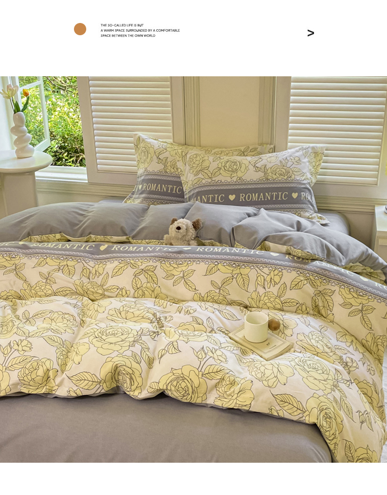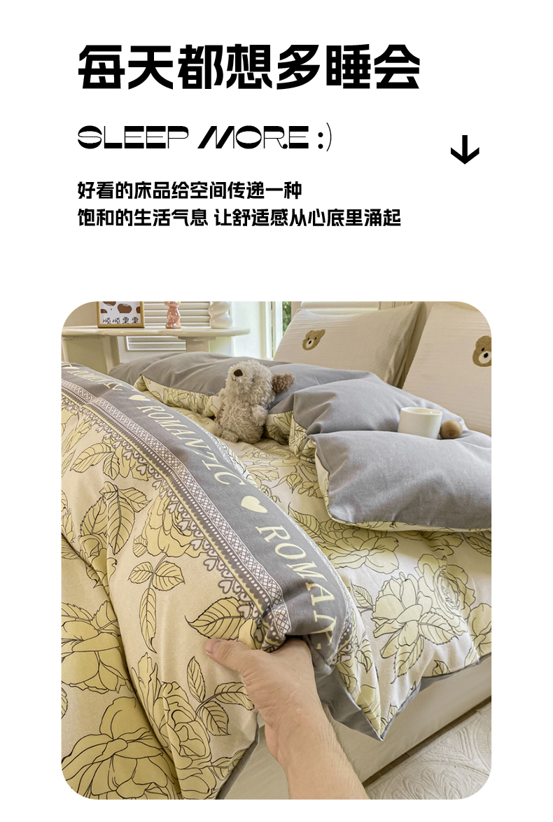 当前位置: 91家纺网 > 商品网购 > 床品套件 > 四件套 > 全棉普通四件套 > 优品阁 2024新款亲肤舒适全棉磨毛四件套学生三件套系列 初恋-灰