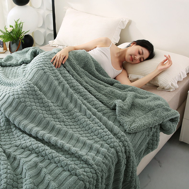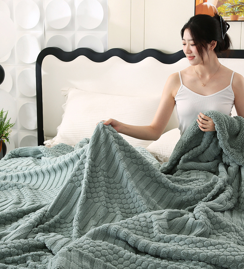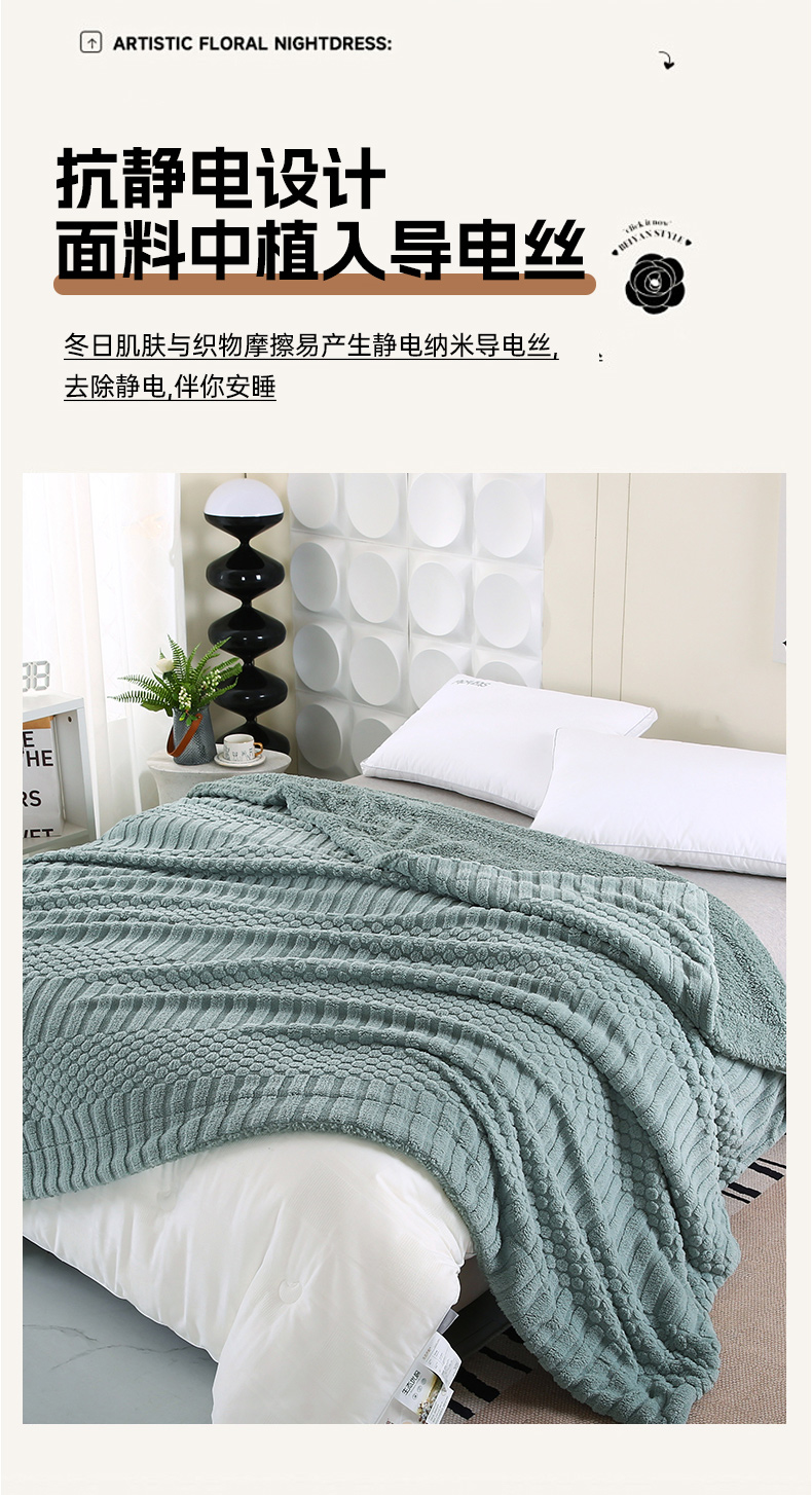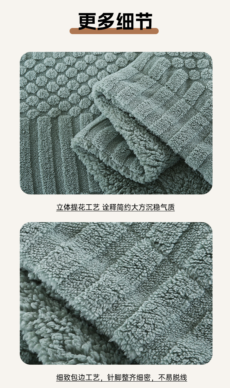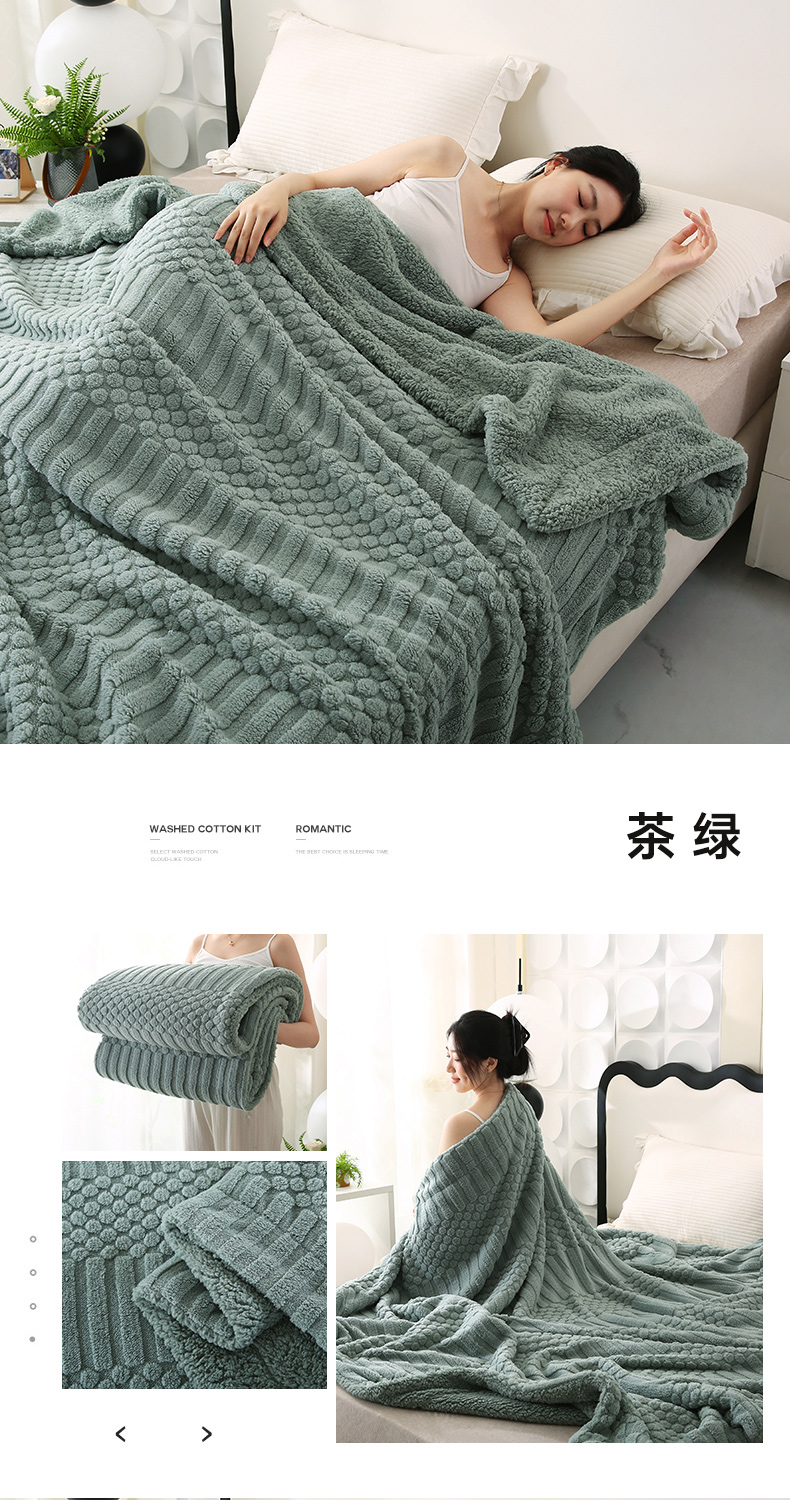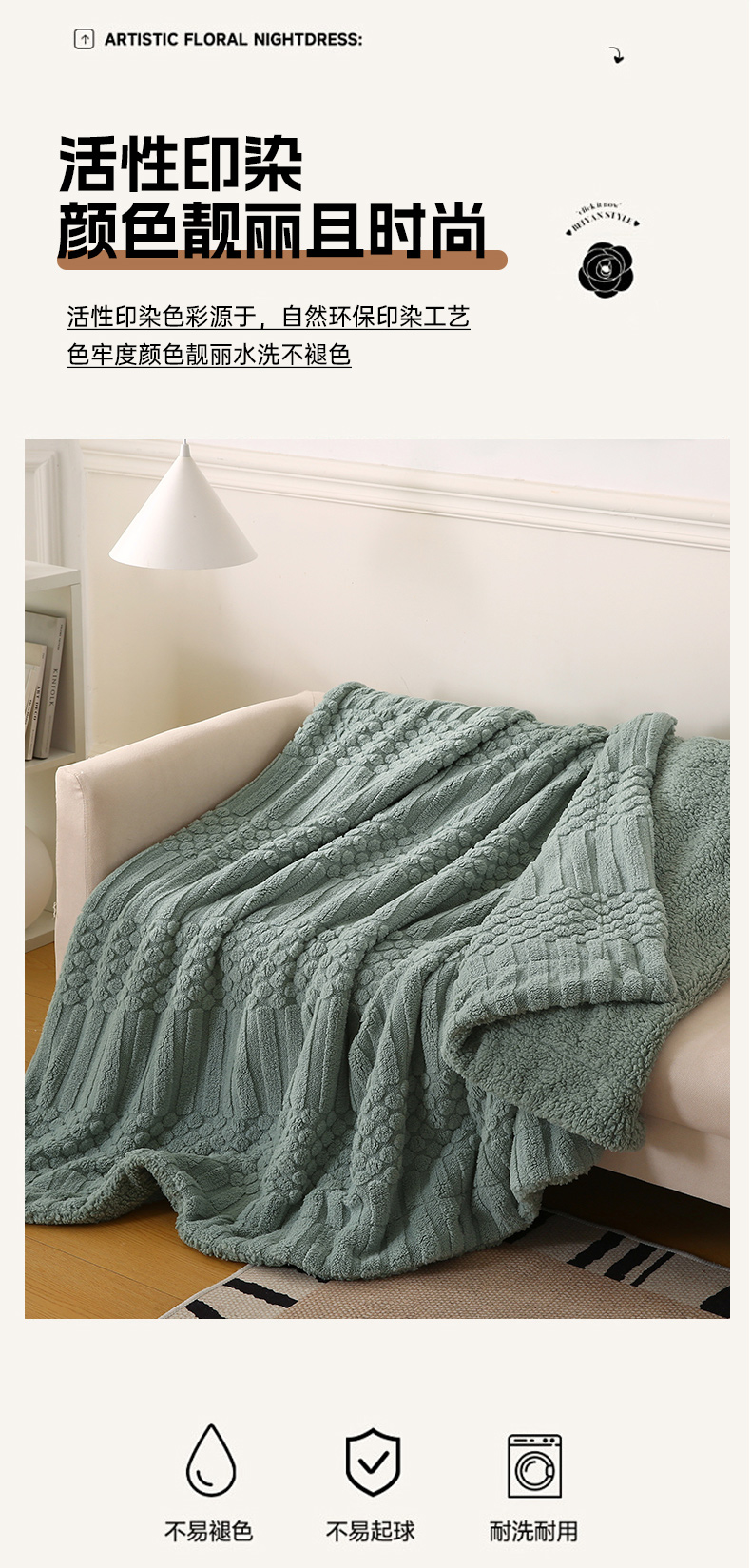 商品名称:巴木赫 2024新款舒棉绒点点塔芙绒双层配色羊羔绒沙发盖毯 茶绿配色