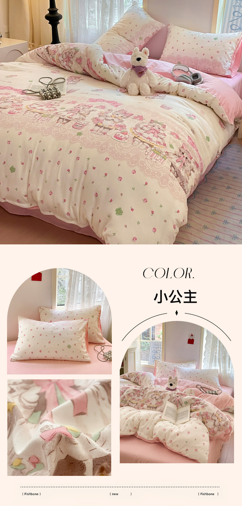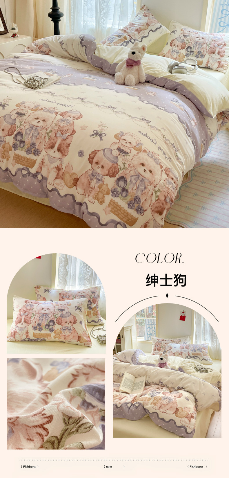 (总)雨帆家纺 2025新款可爱卡通牛奶绒贴布绣四件套,粉格小猫,黄格+咖小熊,蓝格西高地,奶粉小猫,奶咖小熊,奶油蓝西高地