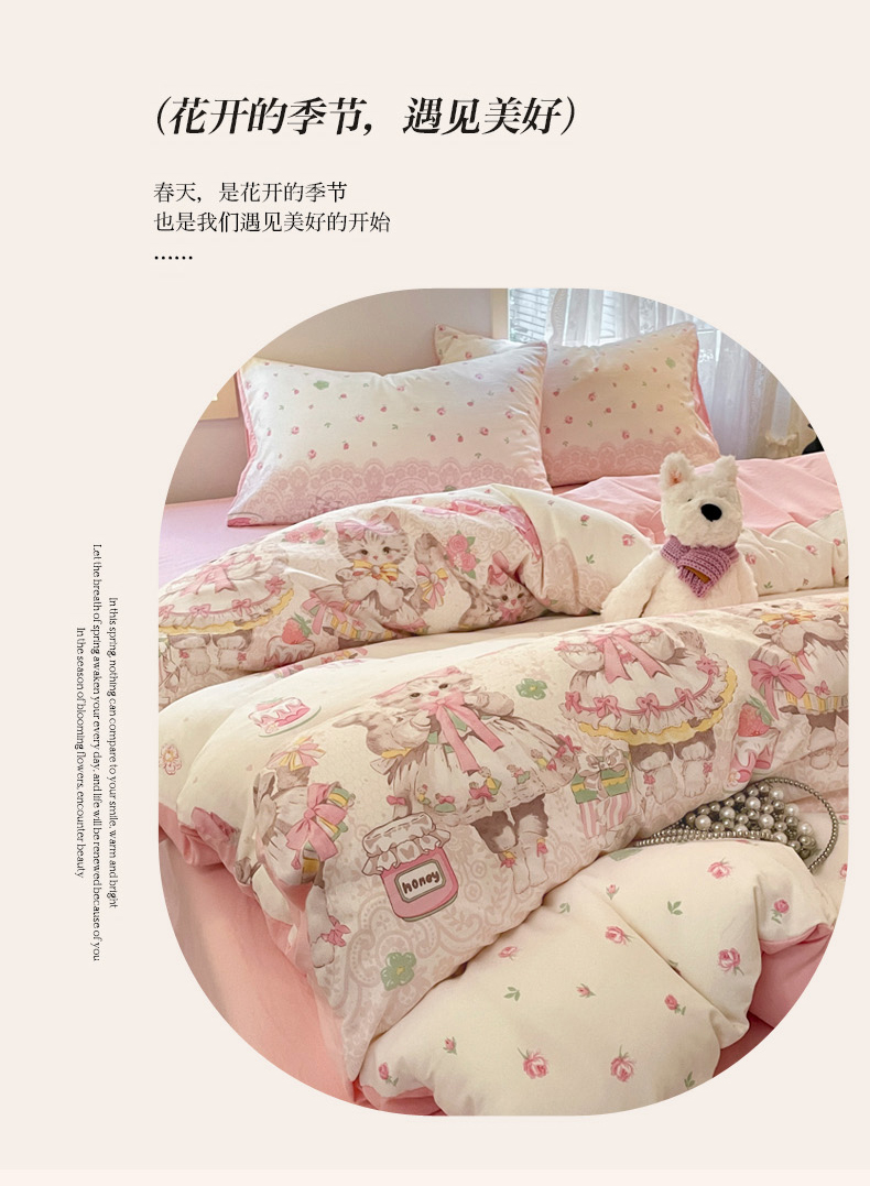 (总)雨帆家纺 2025新款可爱卡通水洗棉贴布绣四件套,粉格小猫,蓝格西高地,奶粉小猫,奶咖小熊,奶油蓝西高地