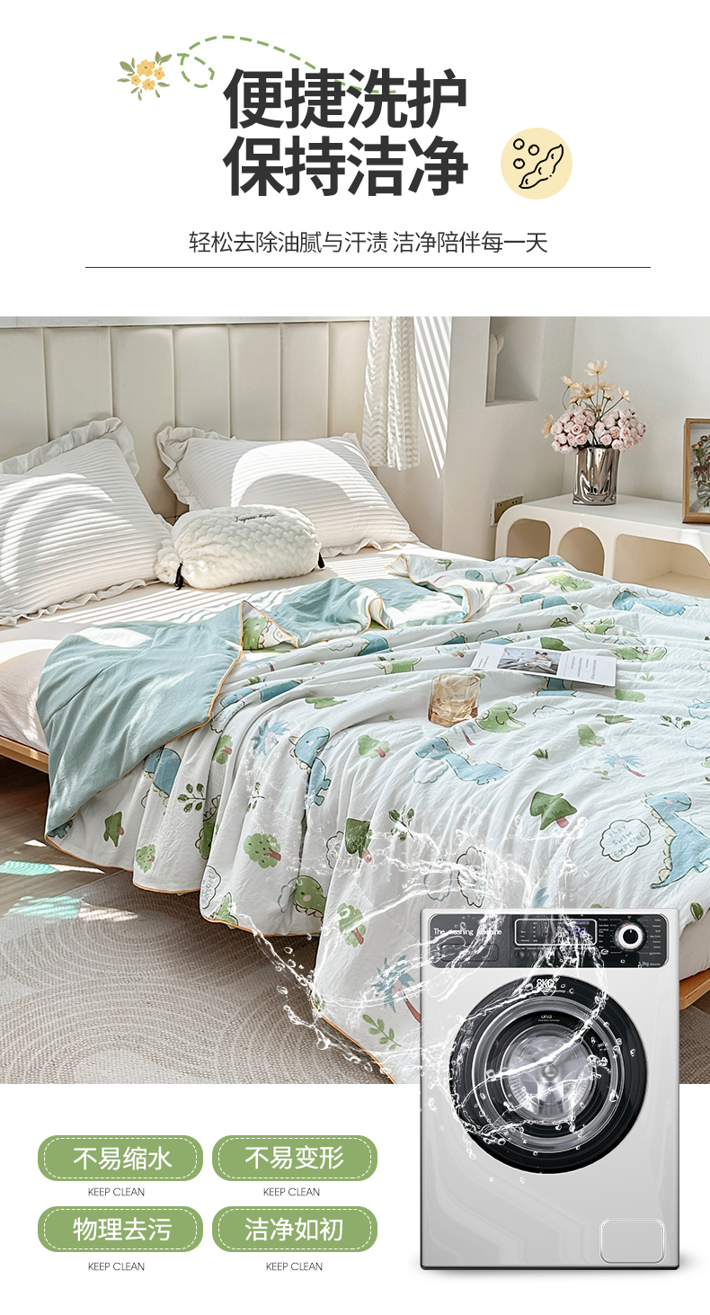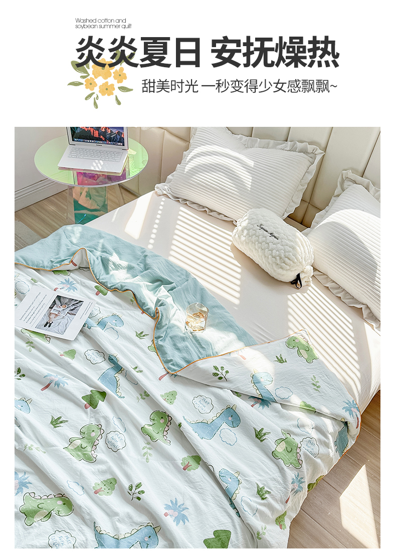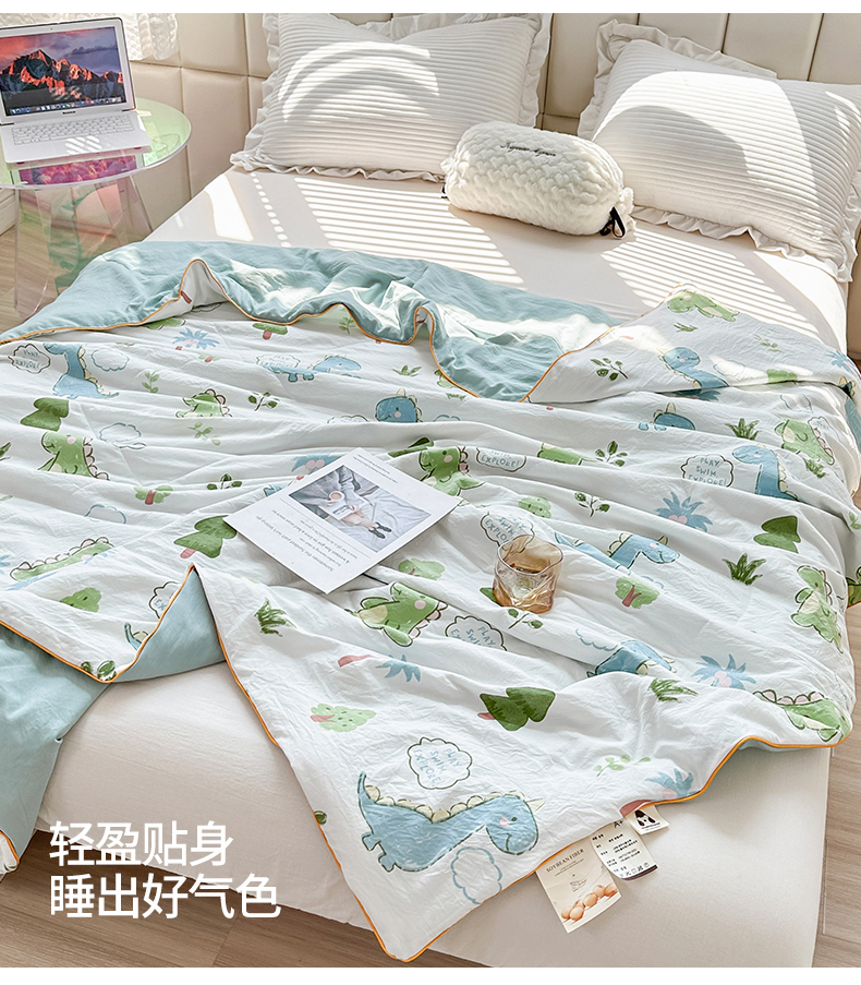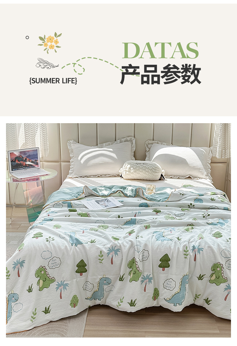 富艺隆 2025新款A类水洗棉双层纱夏被水洗棉麻空调被直播爆款大豆夏被 恐龙星球