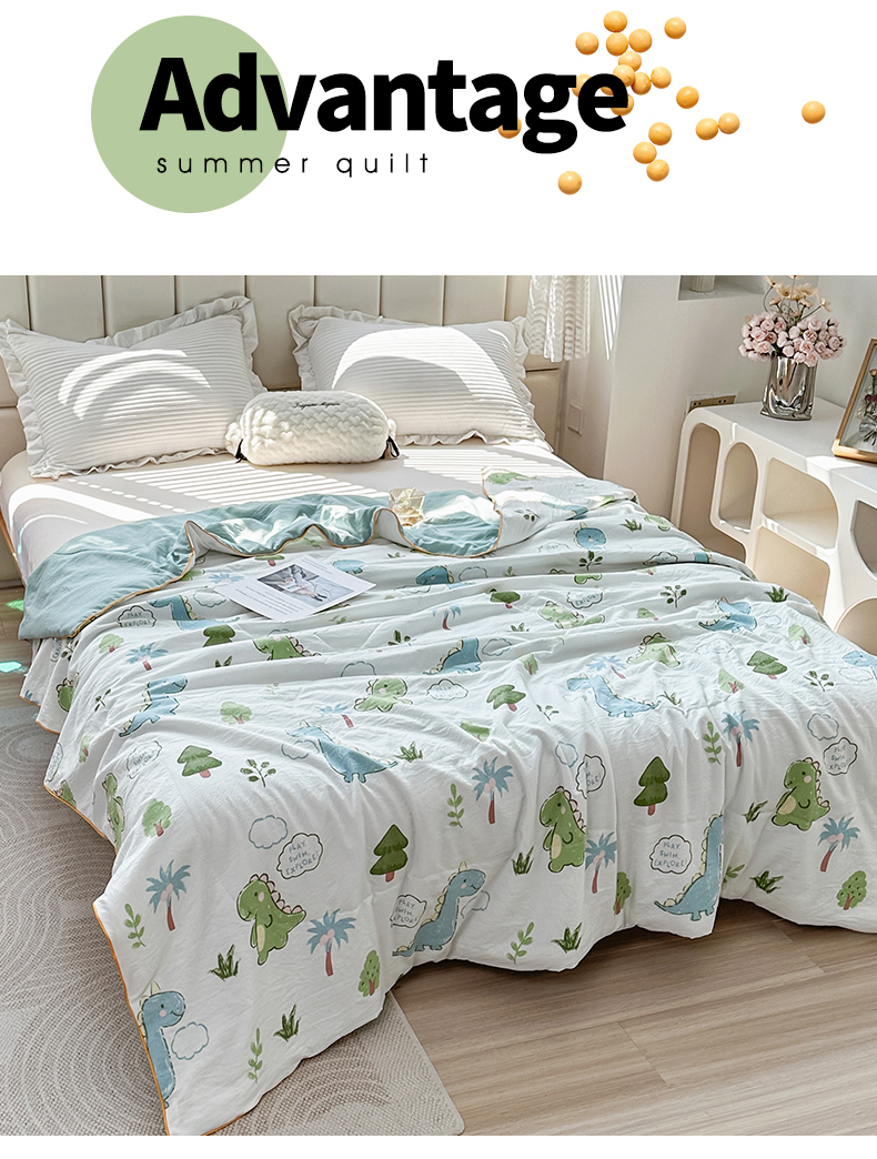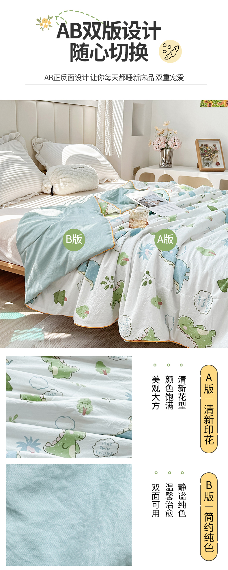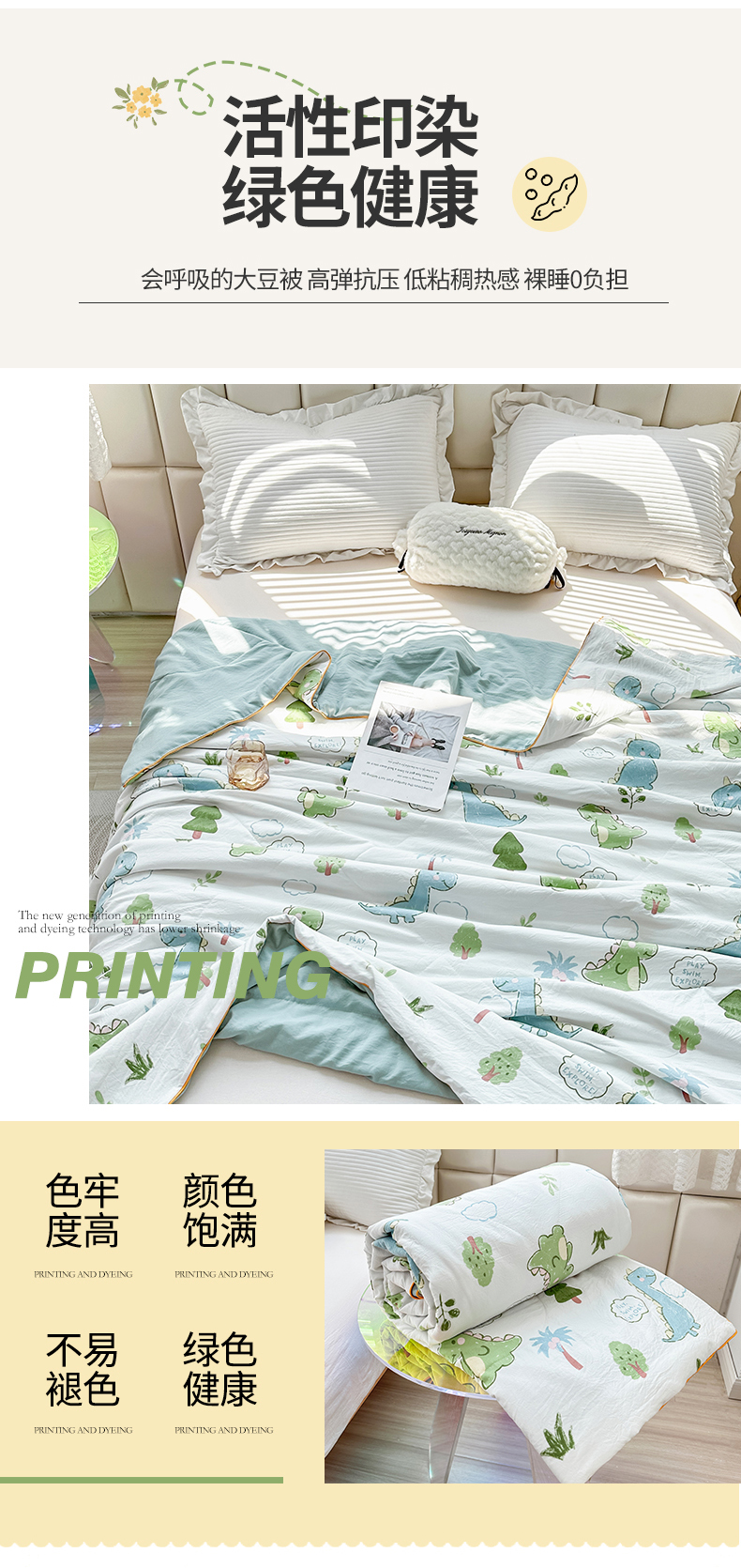 富艺隆 2025新款A类水洗棉双层纱夏被水洗棉麻空调被直播爆款大豆夏被 恐龙星球