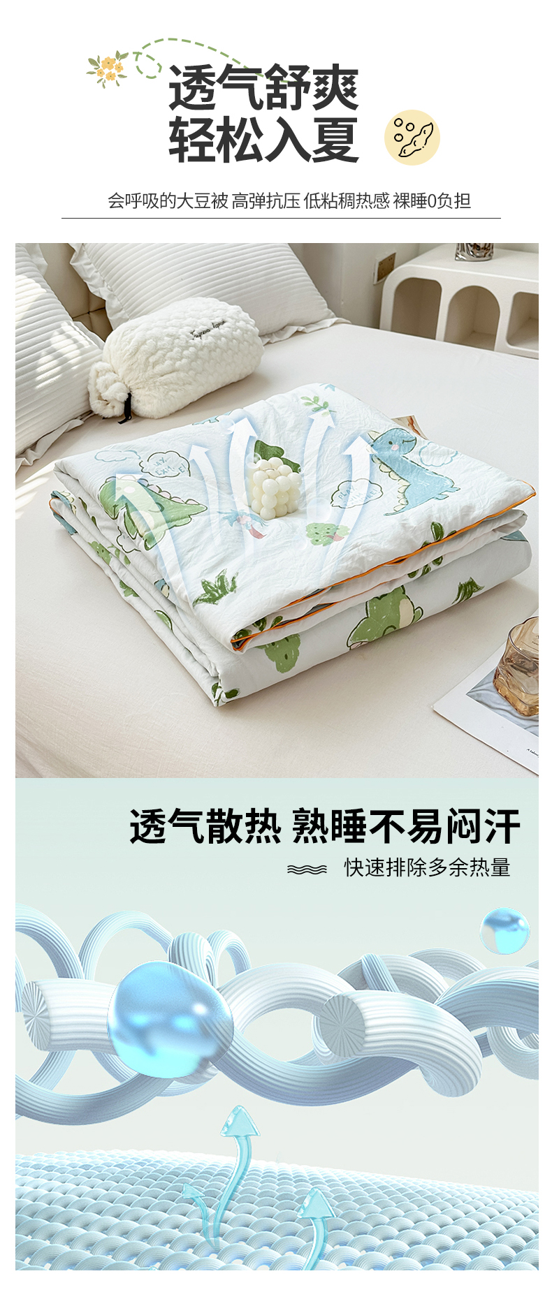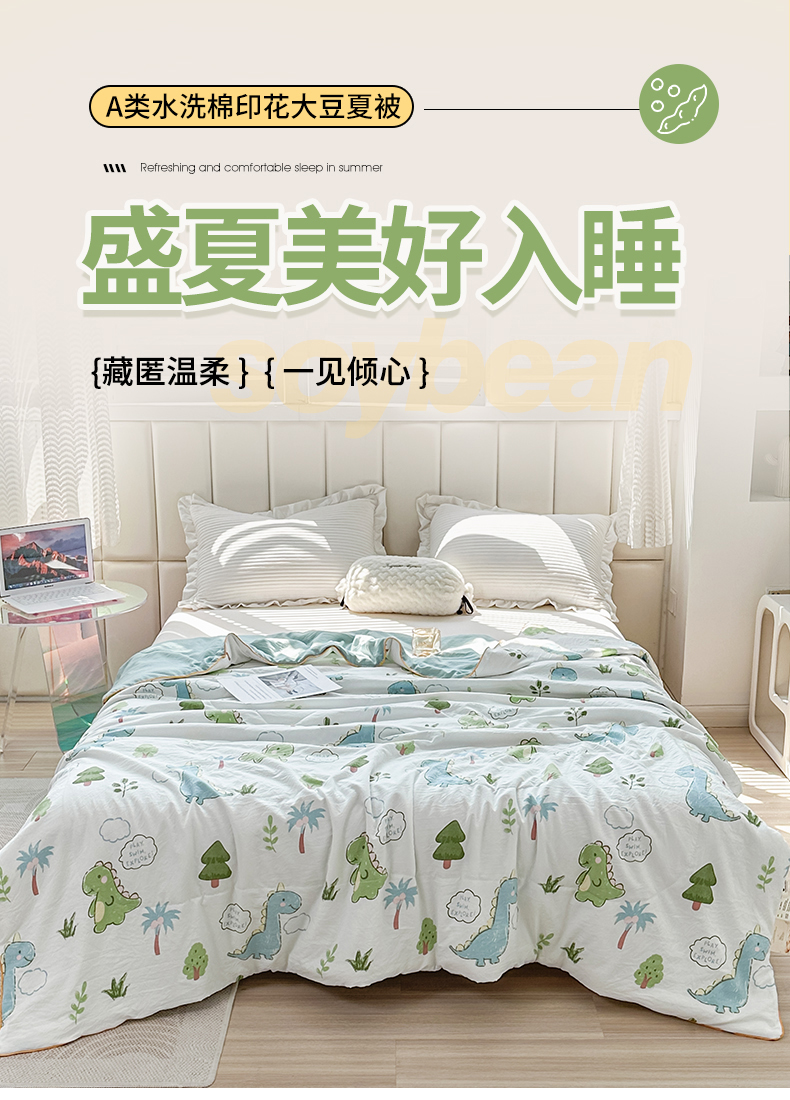 商品名称:富艺隆 2025新款A类水洗棉双层纱夏被水洗棉麻空调被直播爆款大豆夏被 恐龙星球