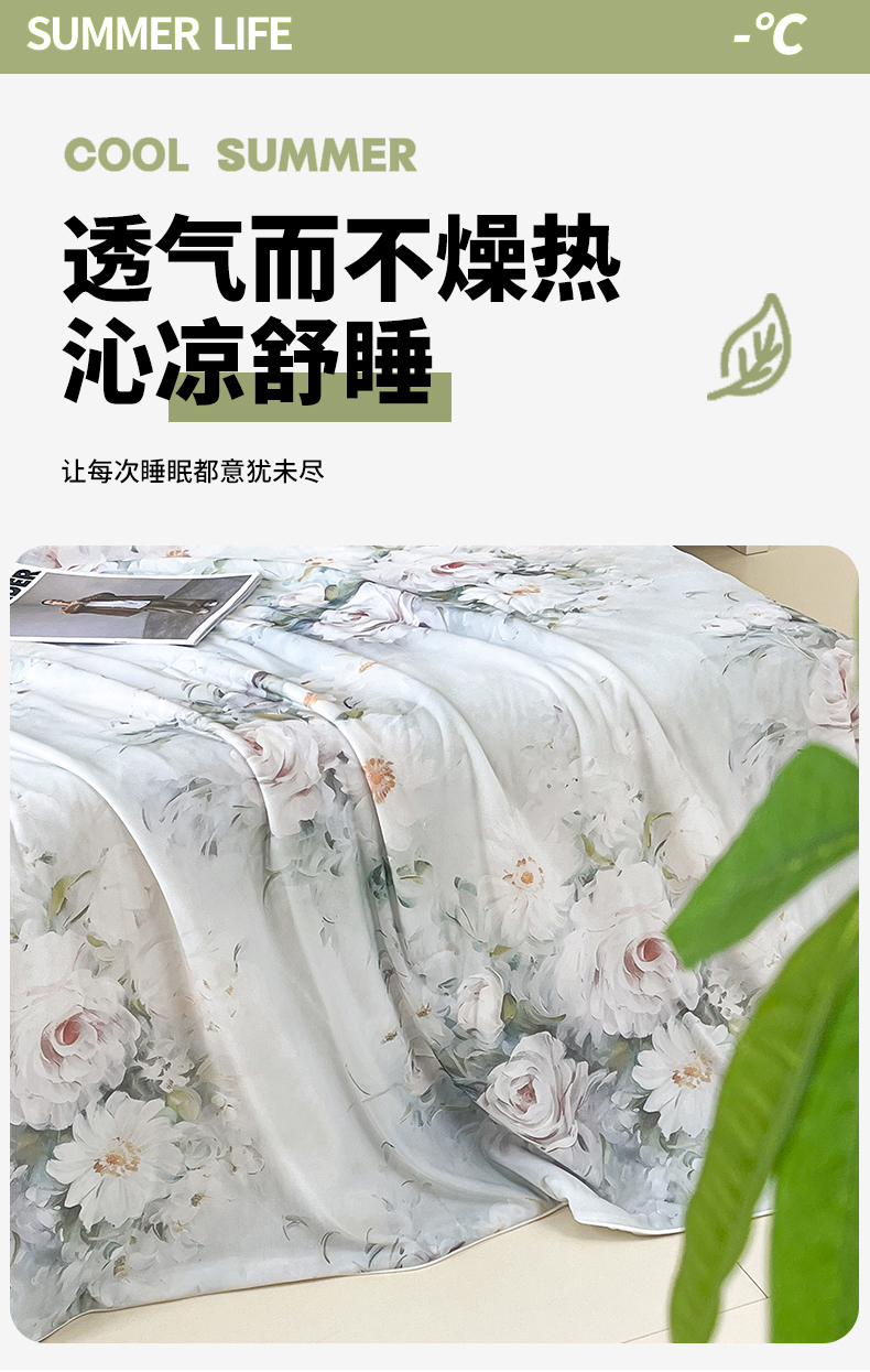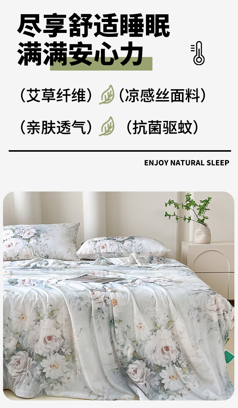 商品名称:(总)青螺家纺 2025新款凉感丝艾草抗菌驱蚊夏凉被空调被3D时尚数码花卉卡通被子(支持质检)
