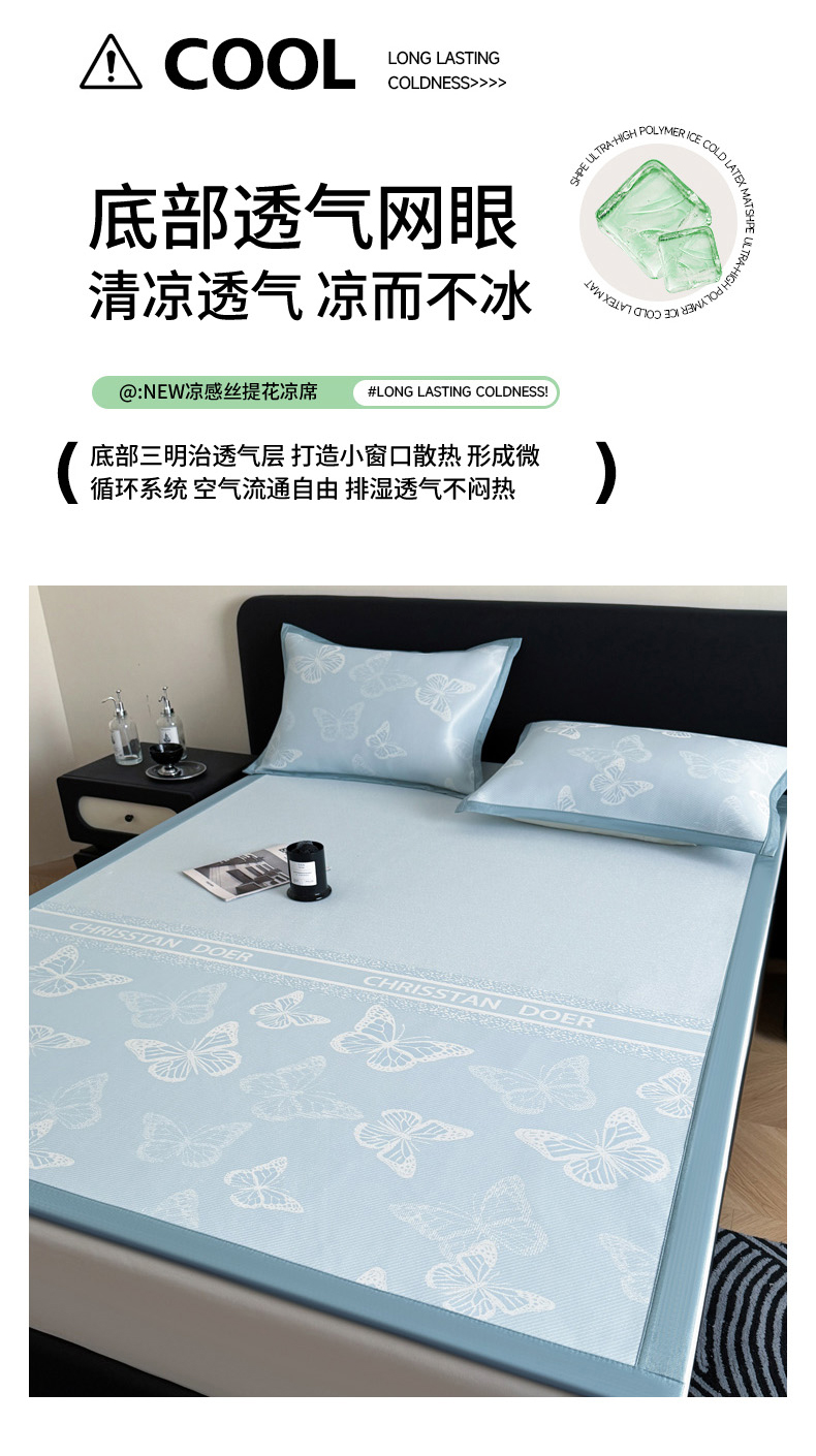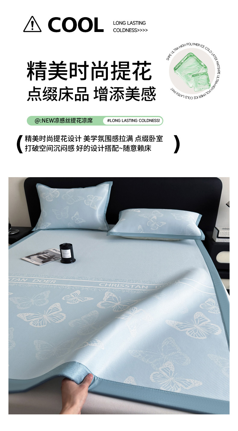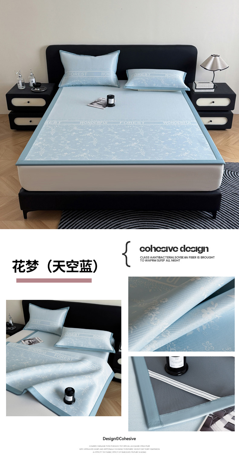 商品名称:九花鹿 2025新款A类PE凉感提花冰丝凉席软凉席可水洗可机洗 雪松之境(青绿)