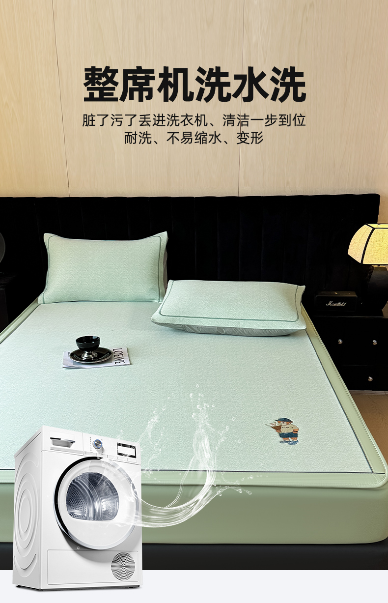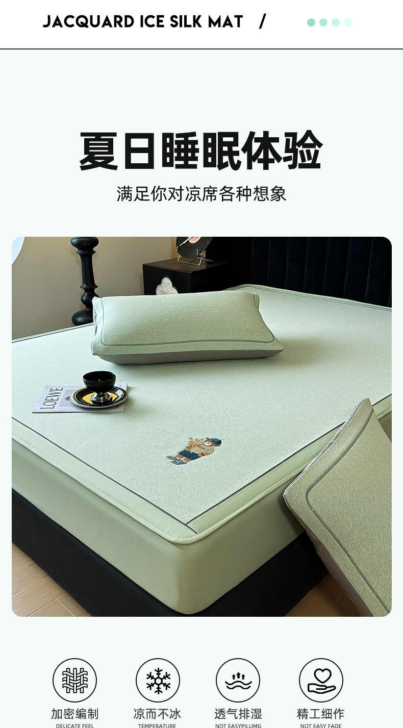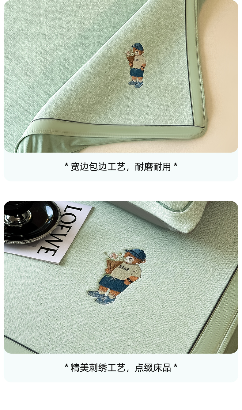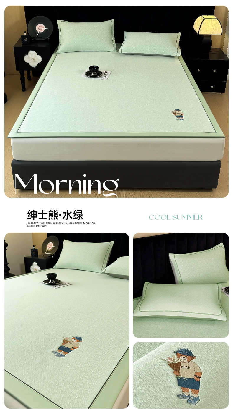 商品名称:全季家居 2025新款5A乙纶全PE绅士熊系列凉感软凉席席子 水绿 床笠
