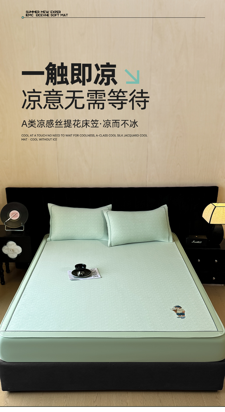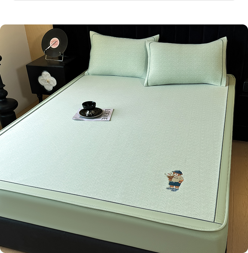 全季家居 2025新款5A乙纶全PE绅士熊系列凉感软凉席席子 水绿 床笠