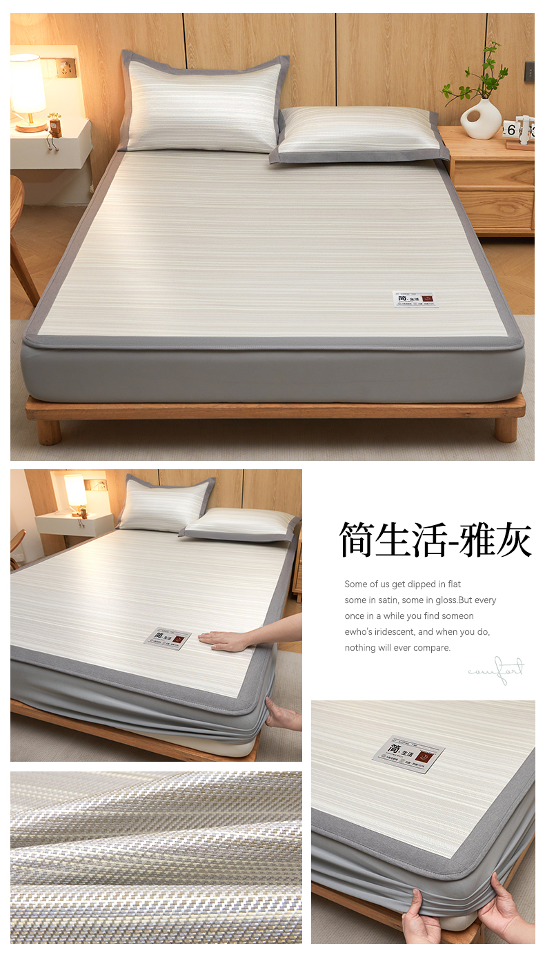 商品名称:全季家居 2025新款5A抗菌防螨仿草席冰藤席凉席席子 良品-雅灰 床笠