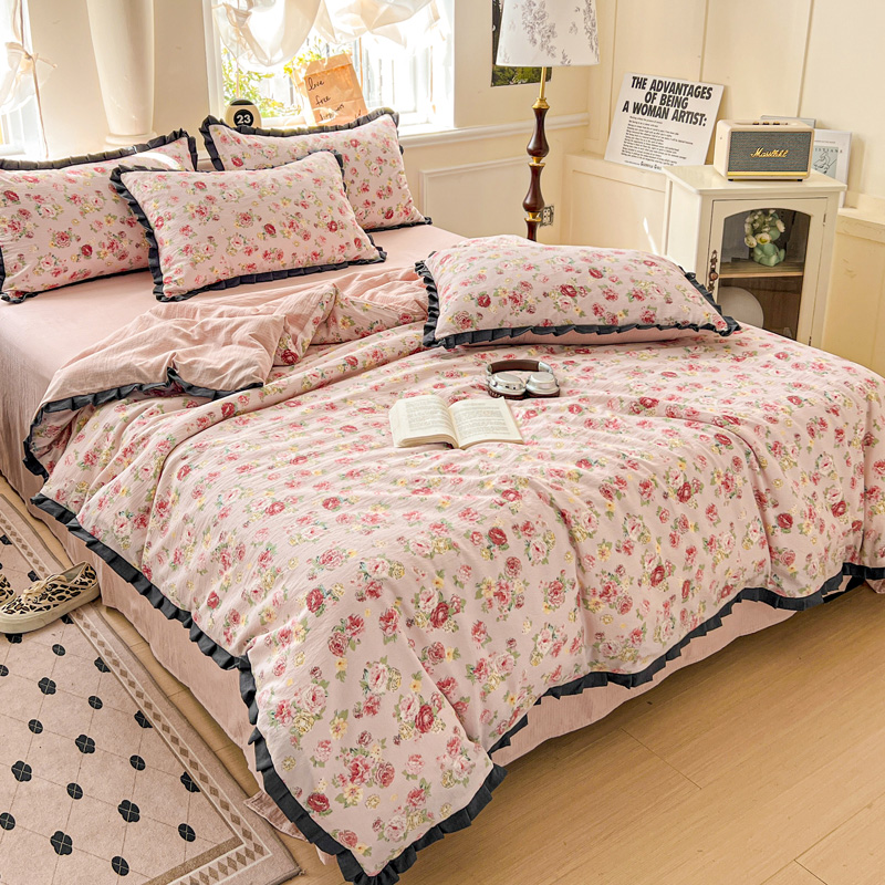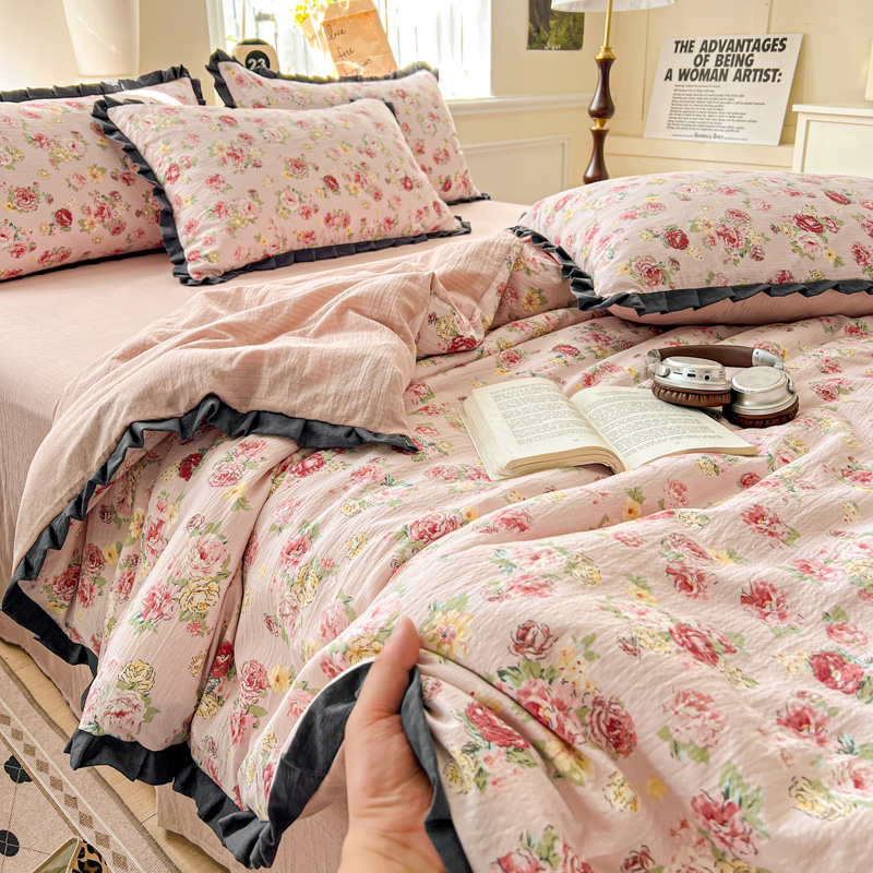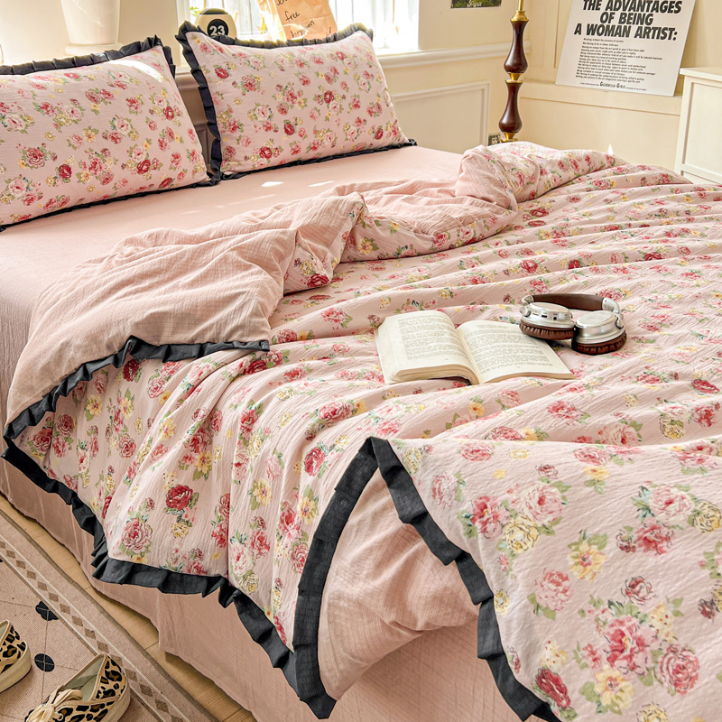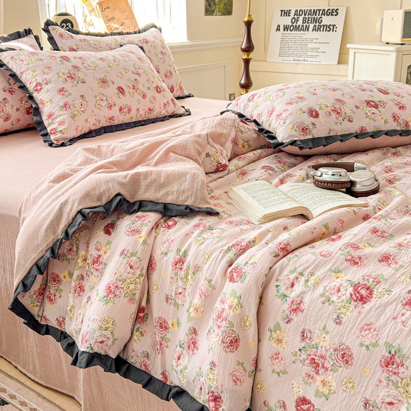 仟网汇 2025新款赫本风四件套 赫本风-玫瑰花园粉