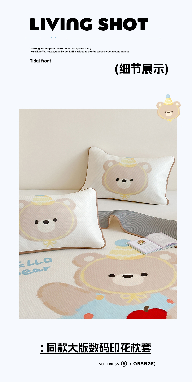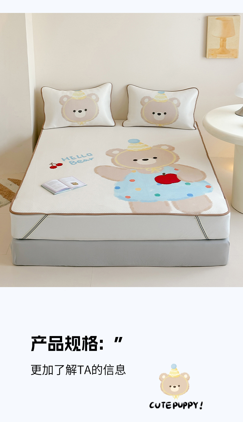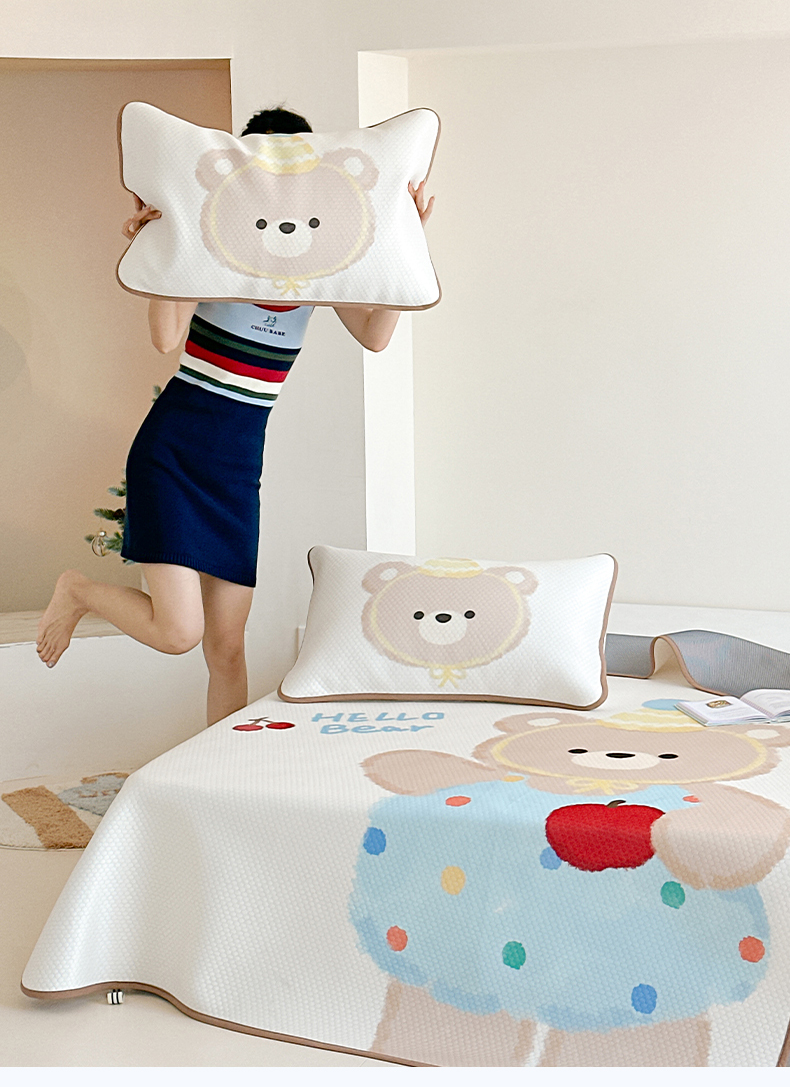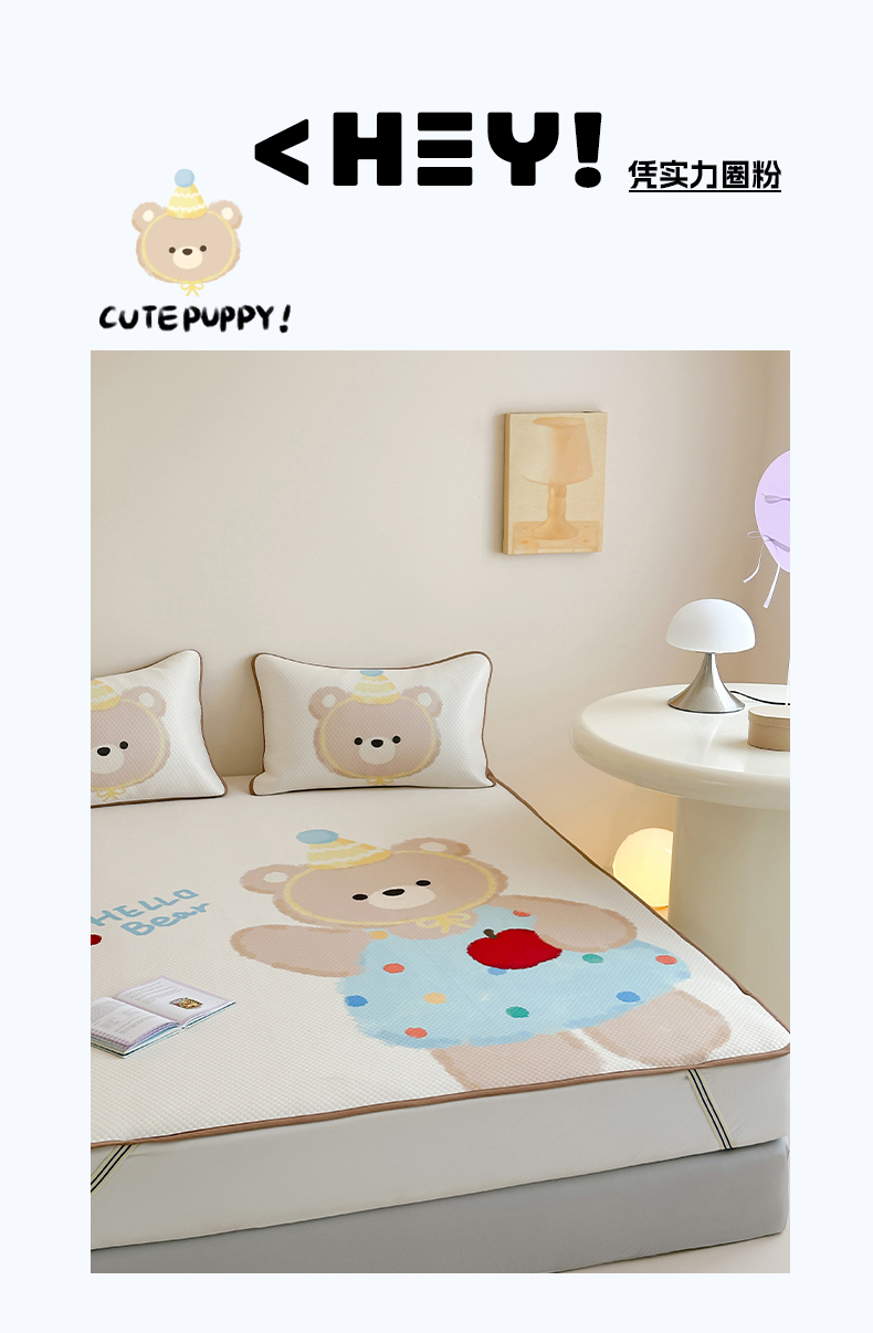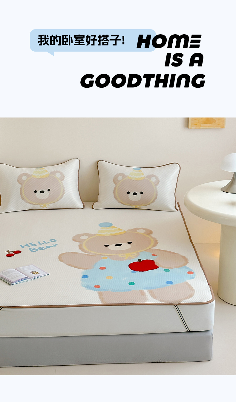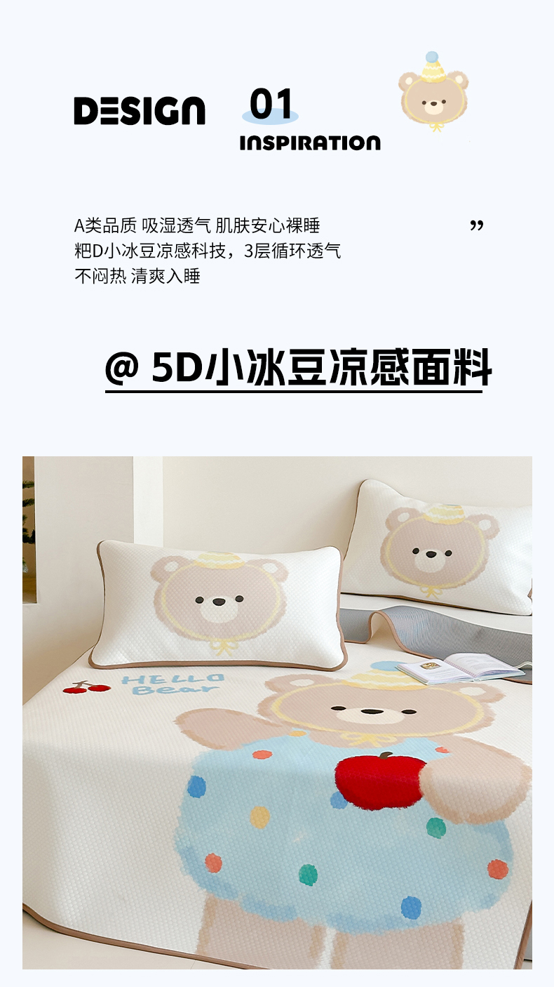 商品名称:RYB红黄兰 2025新款ins设计师原创A类数码大版卡通印花冰豆豆席凉席席子 奶油苹果熊