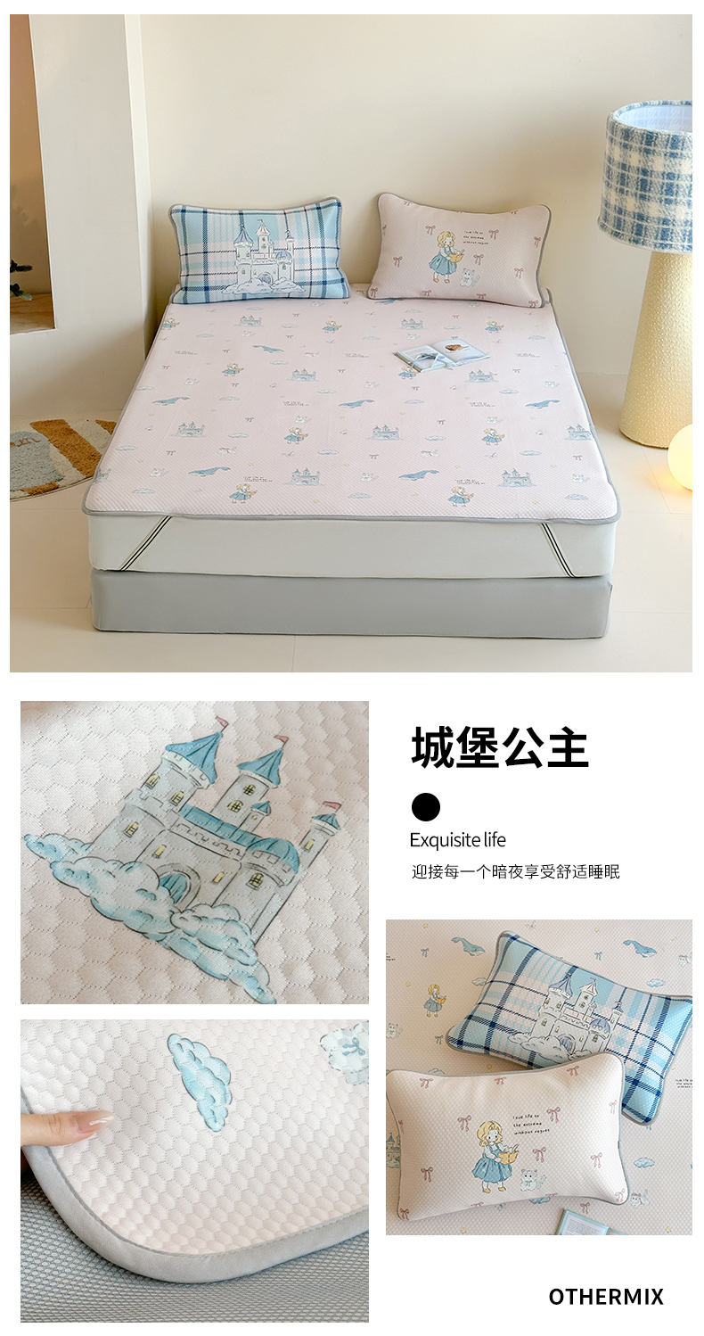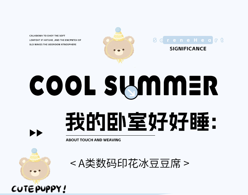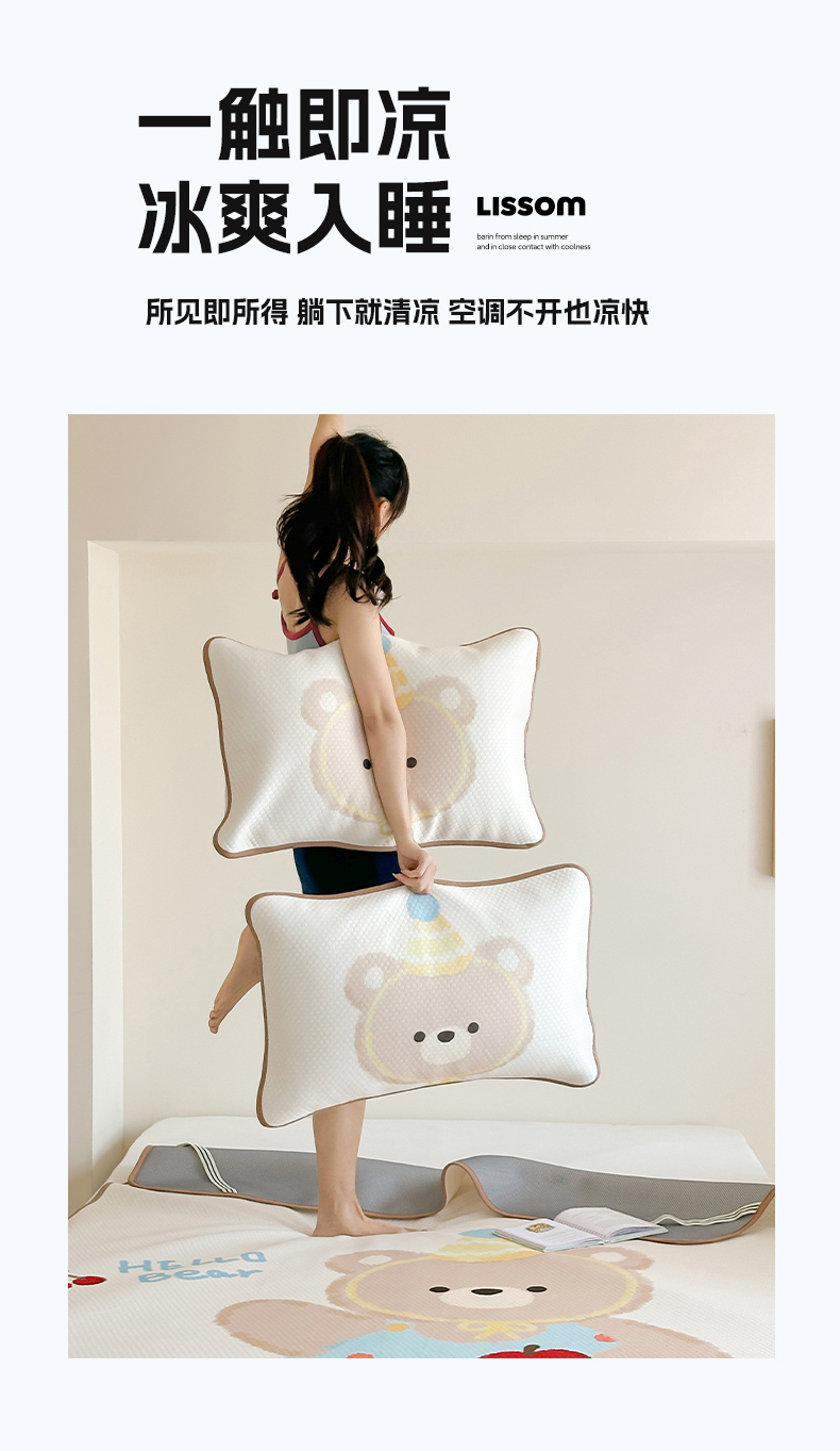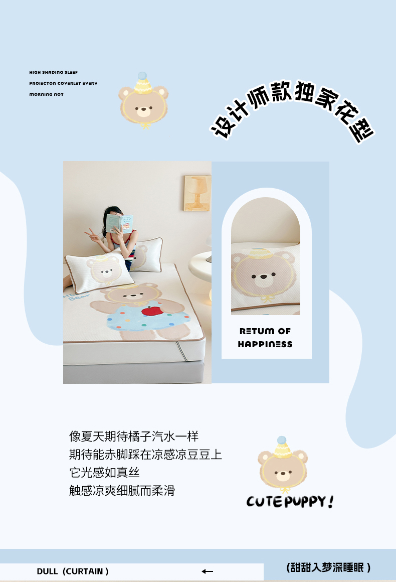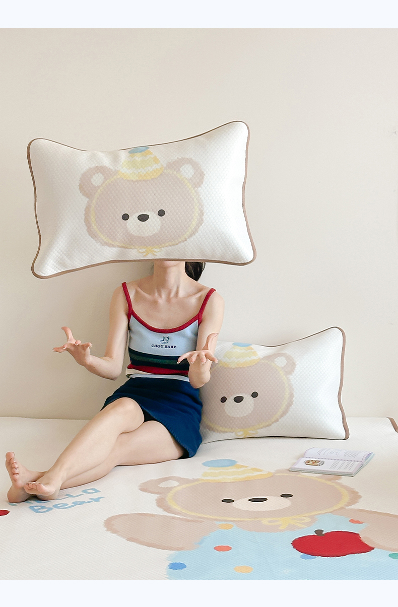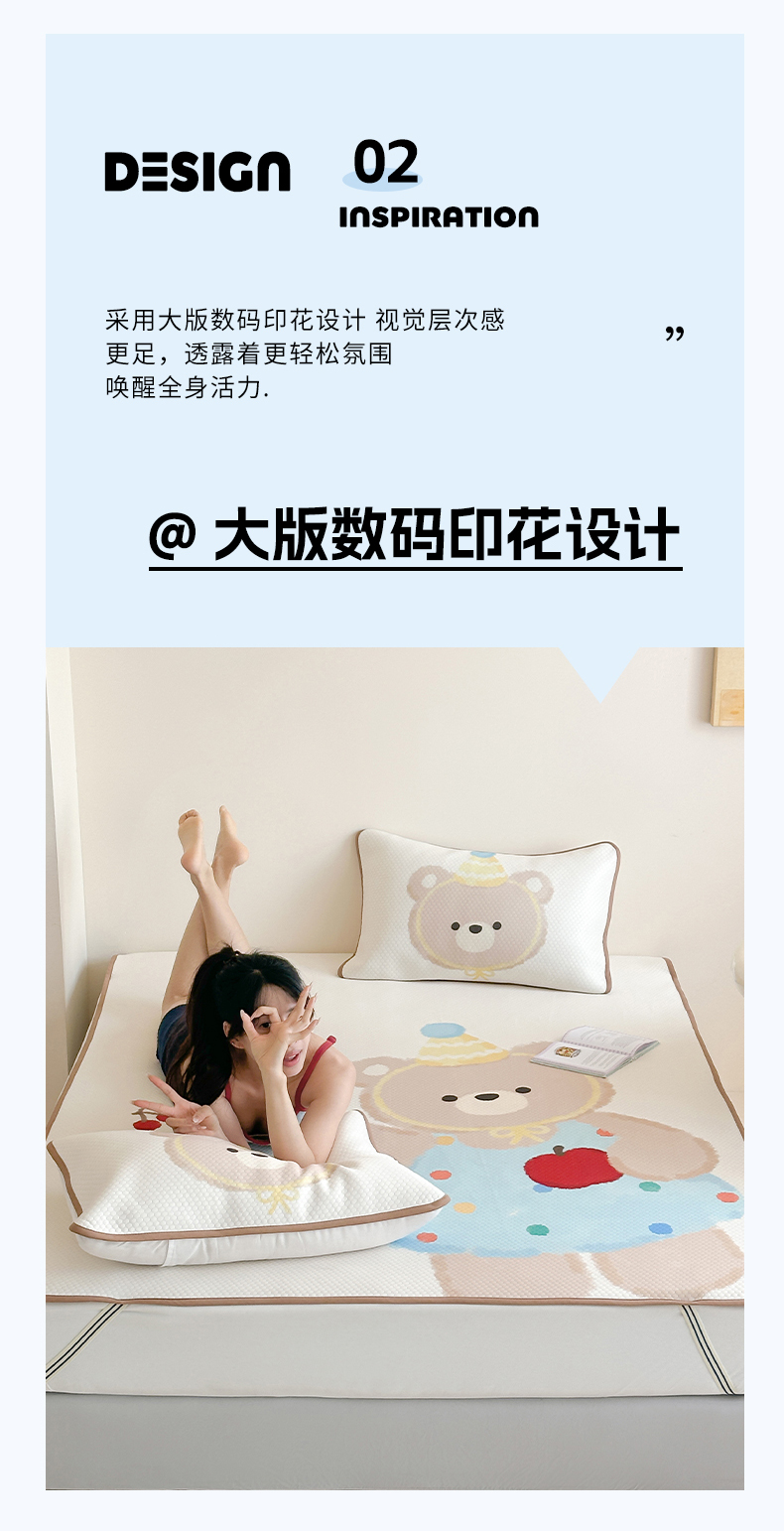 商品名称:RYB红黄兰 2025新款ins设计师原创A类数码大版卡通印花冰豆豆席凉席席子 奶油苹果熊