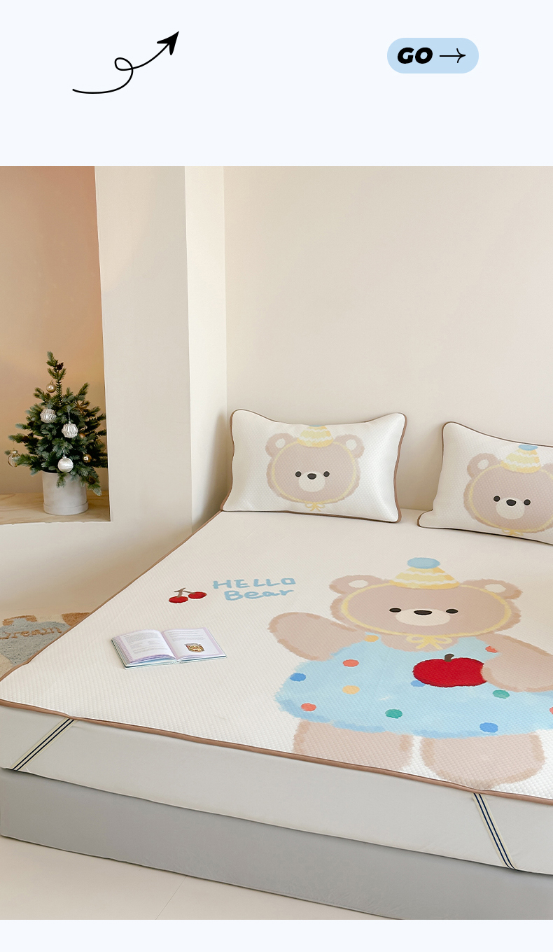RYB红黄兰 2025新款ins设计师原创A类数码大版卡通印花冰豆豆席凉席席子 奶油苹果熊